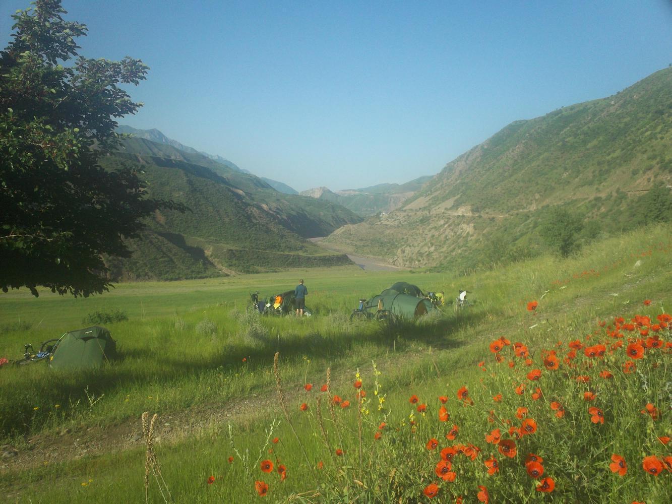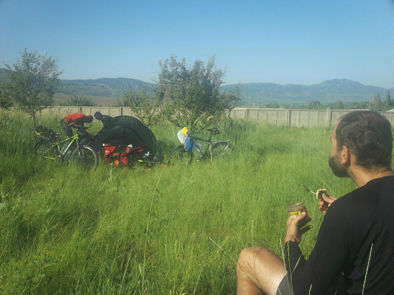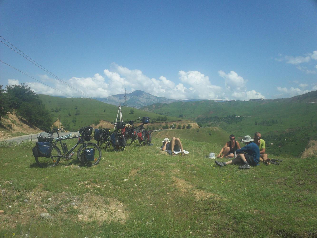 We were climbing gradually up through a valley and it was beautiful, the sun was shining and I had great company. We didn't do too much distance, taking long lunch breaks to avoid the worst of the days' heat. One day we chose the shade of a mulberry tree for our siesta and whilst the others snoozed I came up with another brilliant idea for a game. The dismal and infamous failure of my magnificent invention 'Pine Cone Wars' during my time cycling with Dr Dave made me decide against trying to play this with my new companions. There were also no pine cones. But there were mulberries. Lots of them. And so 'Mulberry Wars' was born. I excitedly explained the rules to everyone which can be briefly summarised as 'we throw mulberries at each other.' I received a mixed reaction, ranging all the way from unenthusiasm to indifference. I really wished the eight-year-old Gabriel was still with us. He would have loved my game. Naturally I played 'Mulberry Massacre' by myself and just threw mulberries at the boring old fogies. I felt this brought us closer together as a group.