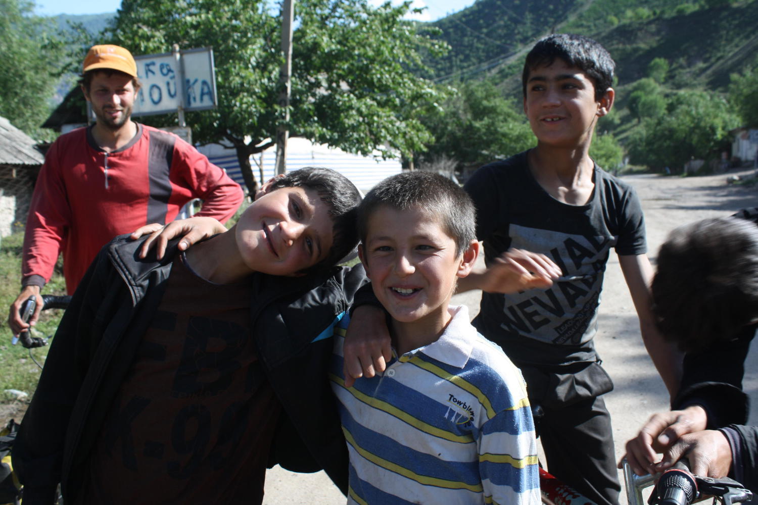 Gayle was out ahead and I was cycling close to John when we saw Gayle pull a U-turn and head back towards a group of kids at the side of the road. "It was that one! Get him John! That one there. He threw a rock at me!"