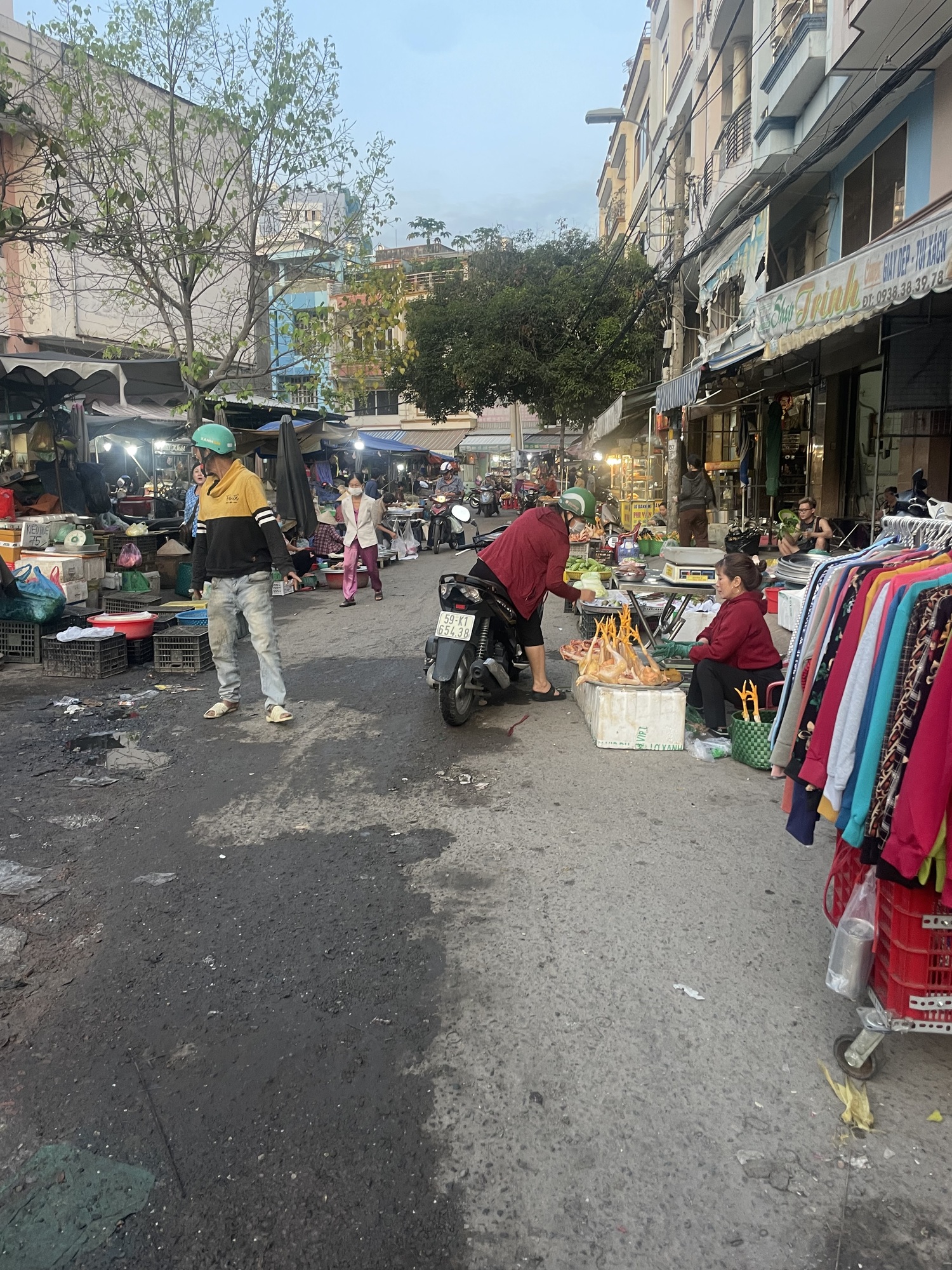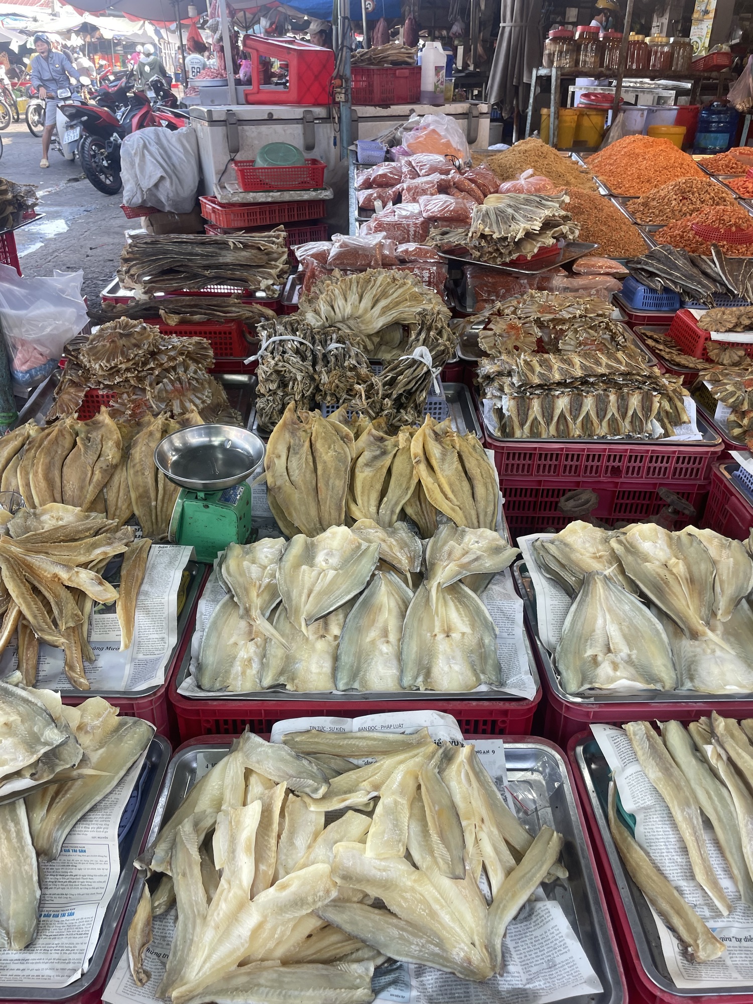 I rode through many markets in Saigon. The markets were so busy getting set up. There are butchers working just slashing meat into huge chunks that they just display at room temperature. That sort of blew me away. Then there are huge bowls of fish and some are still alive. I saw some beautiful fruit but I kept moving and I’ll have some another day.