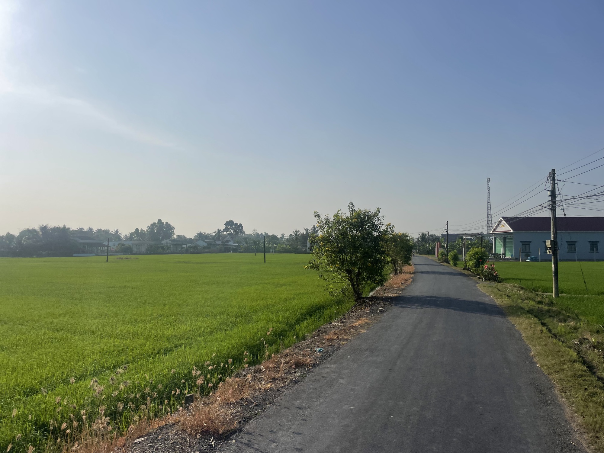 With the flat roads and pavement I was making good time. I think I covered 60 km by 9:30/10. I rode through some farmland with rice fields. I had a few navigation glitches. One path started fine but just disappeared. I tried another couple ways and ended up at people’s houses. I got some funny looks.