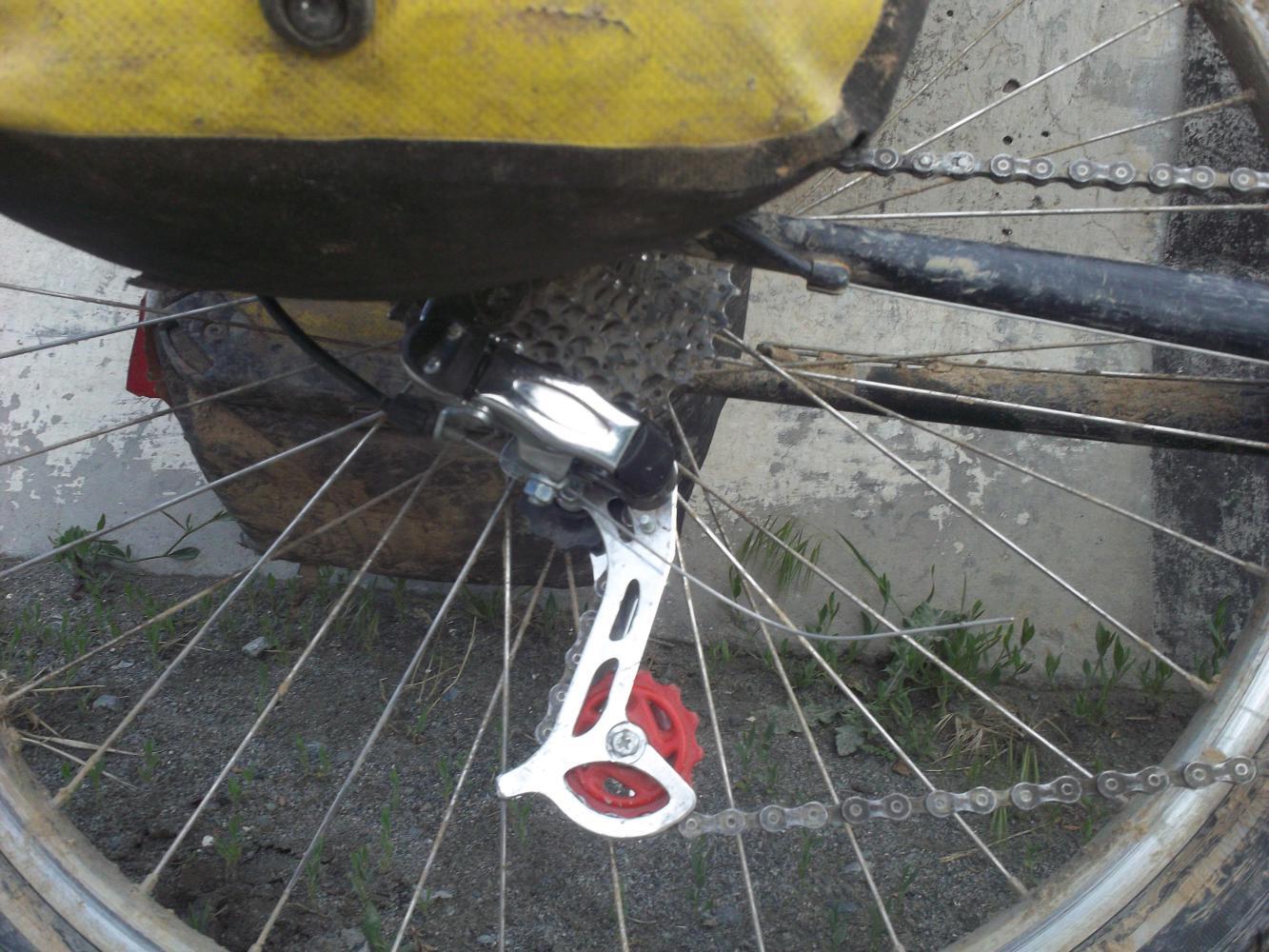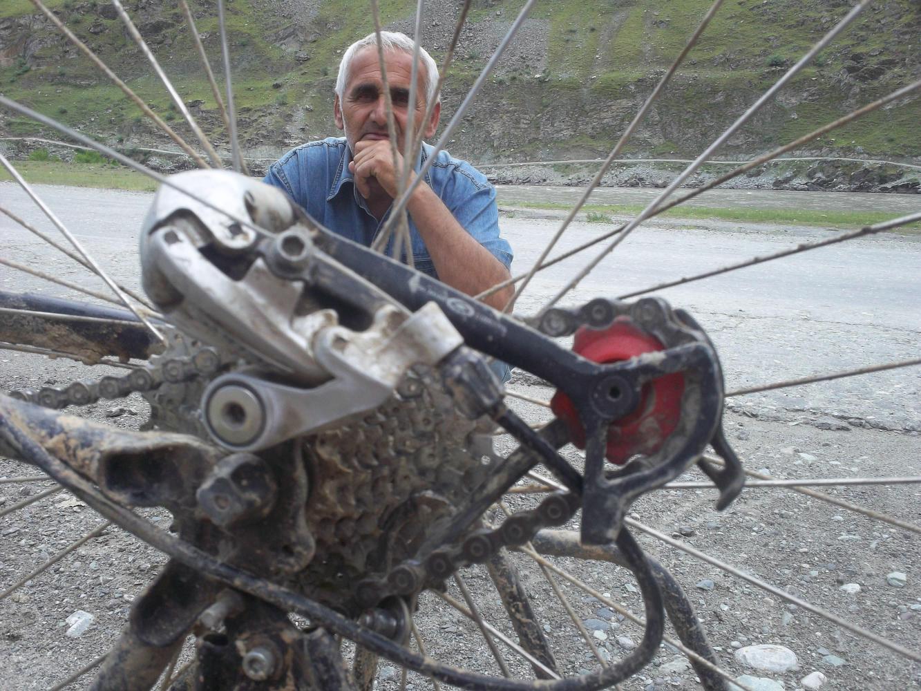 I asked around. Promising noises were made. Then a bearded man in a skull cap arrived and unlocked the bolted door, ducking inside and lifting up the shutters of the kiosk for me. Inside was a cornucopia of products including, I believe, both CDs and hammers. The bicycle parts section covered about five inches of one shelf. I showed my broken derailleur to the man, more in hope than expectation. But he nodded and reached his arm behind a cassette and a pair of brake pads. His arm went back and back, seemingly reaching out into another dimension filled with bicycle parts, before returning to this one with one brand spanking new rear derailleur. I cautiously asked how much it was. He knew I needed it, he could pretty much name his price. I decided that I would happily pay anything up to fifty dollars. Actually I'd probably have paid a hundred. There wasn't another a bike shop within a hundred kilometres and I needed this thing really bad. "Twenty somoni" he said. It seemed like a reasonable price. For those of you not up on your Tajik currency conversions twenty somoni is about four dollars, or two pounds and fifty pence. I coughed up.