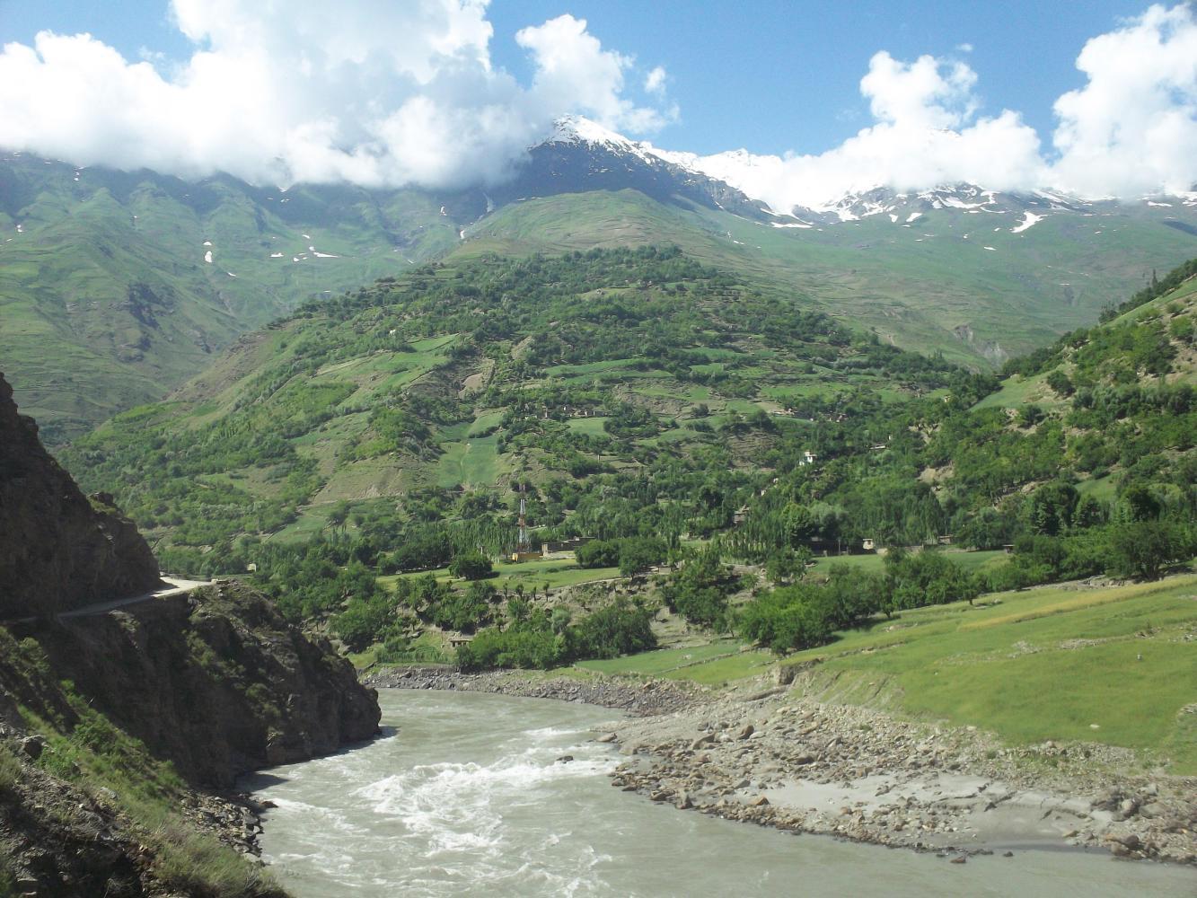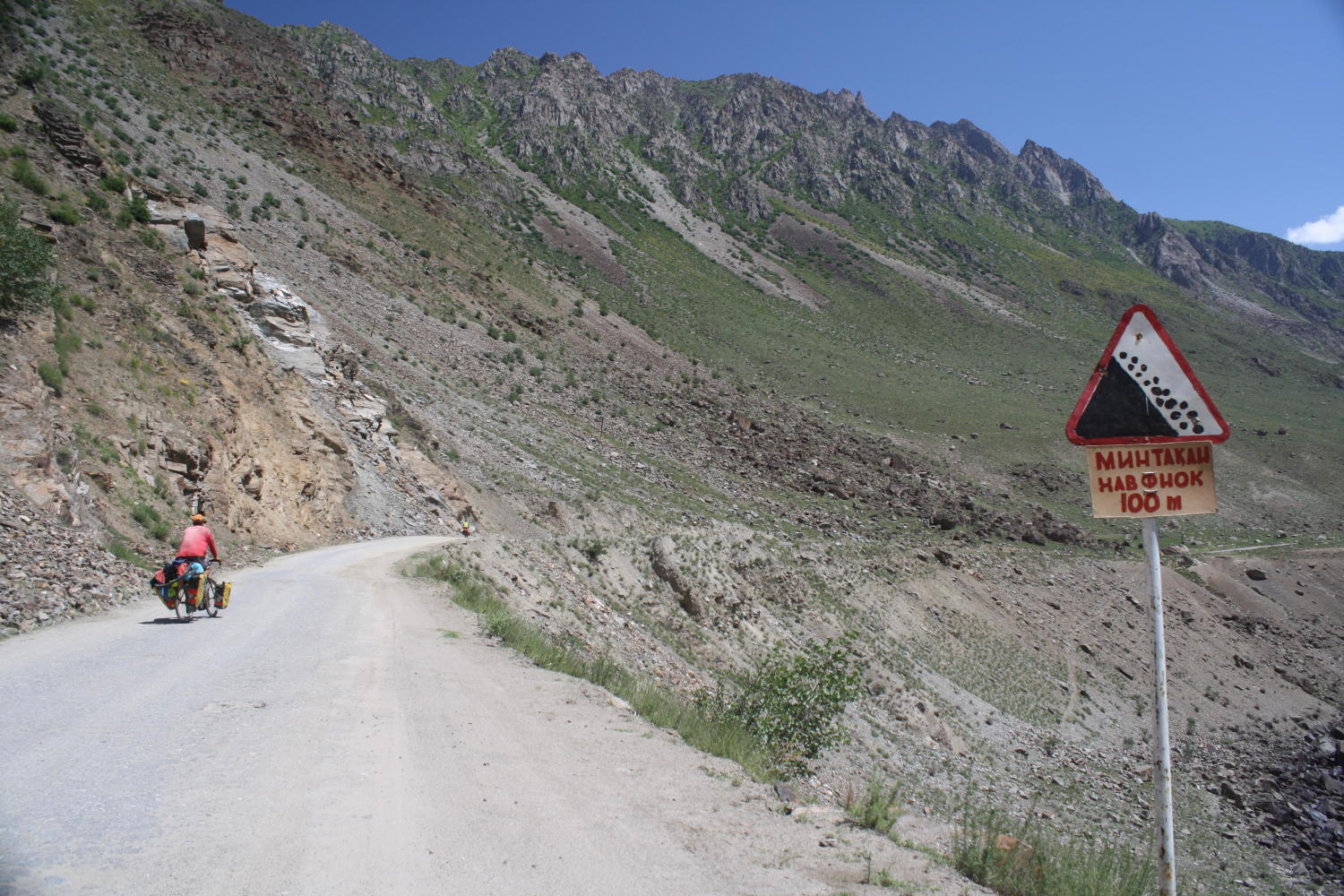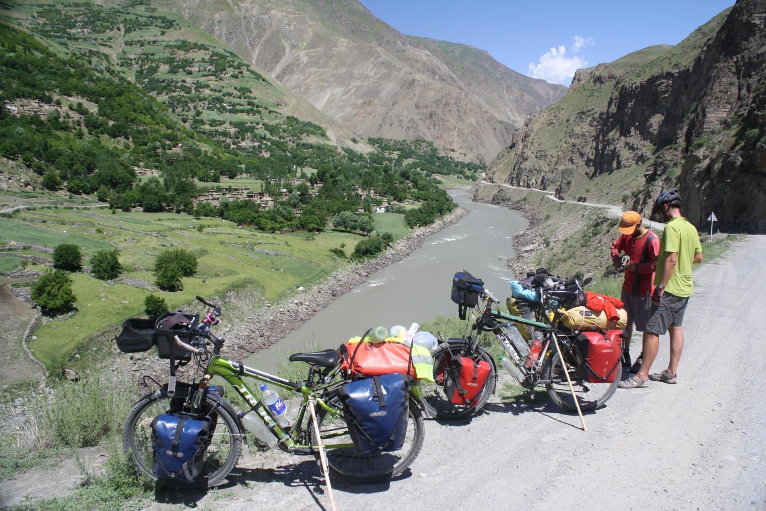 The three of us found ourselves taking a break from the heat of another beautiful day in a shady village. Up ahead lay the checkpoint at which Daniel, Jona and Franzi had all been turned back and told that they could go no further. This was the crucial moment - was the long and arduous journey going to prove to be all in vain? Was the only thing ahead of us a long and arduous journey back to Dushanbe? Or would we be allowed through, on towards the angry mob and the bloody violence? I sure hoped so. I decided to go on ahead to the checkpoint, perhaps thinking I might have more chance of getting through on my own, or perhaps thinking I might have more chance of not being killed by John and Gayle if I didn't ride with them.