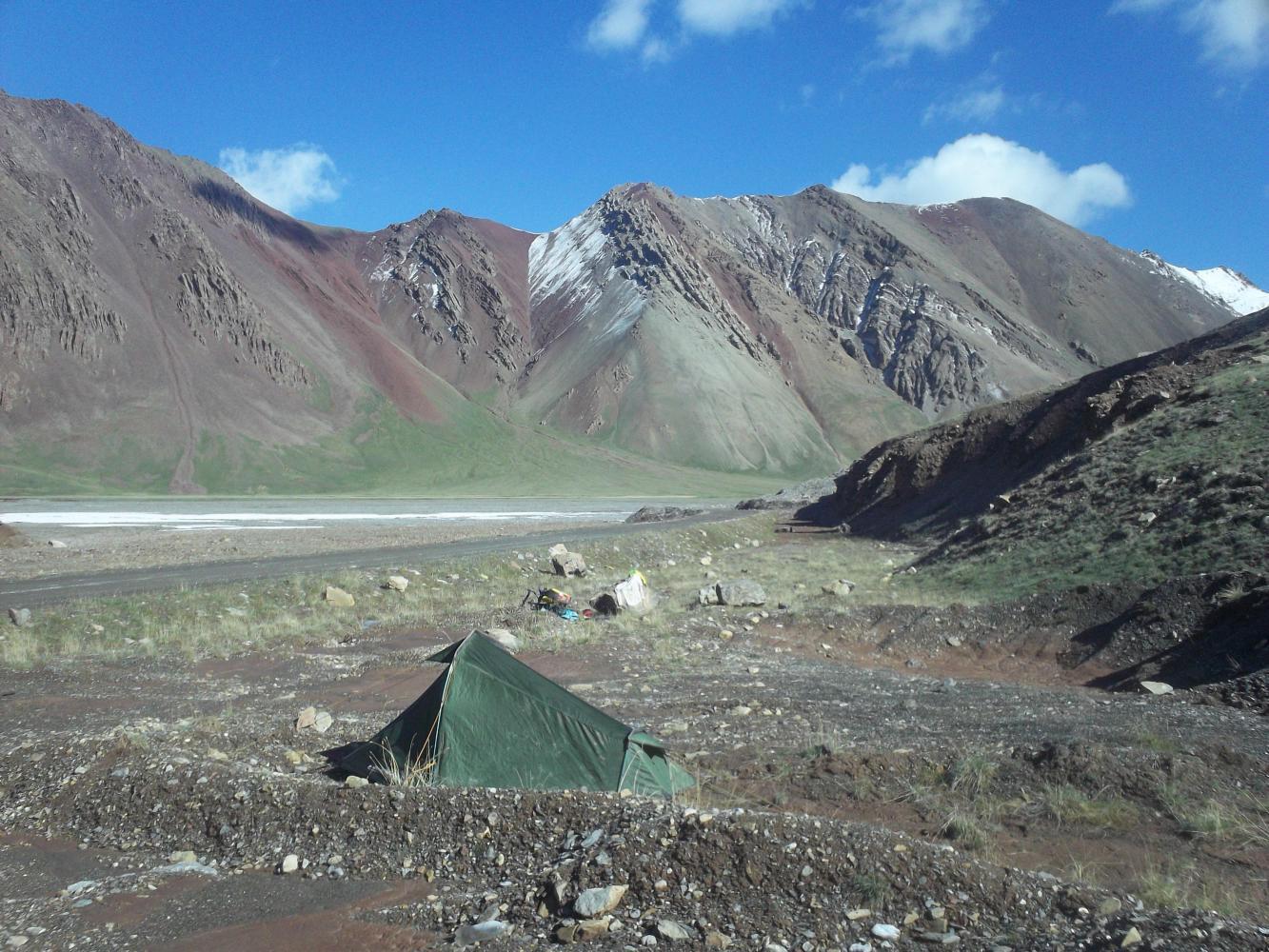 The road improved and opened up into a broad valley, whereupon I stopped to wash the mud off my bike and was soon met by an 'extreme tourist' coming the other way. Gero, a Spanish cyclist, probably deserved the title more than me though, given that he was heading off to cycle the Pamir Highway without a tent. We exchanged our stories and our currencies. He mentioned some other cyclists that I might soon meet - a Frenchman on a world tour, an English guy (not another Brit surely? I'd have to avoid him) and a Kyrgyz girl. A Kyrgyz girl?! Cycle touring?! Even after four sad and lonely years I was still optimistically hoping I might find a beautiful female also riding alone to cycle with and my ears pricked up at the mention of the Kyrgyz girl. I said my ears.