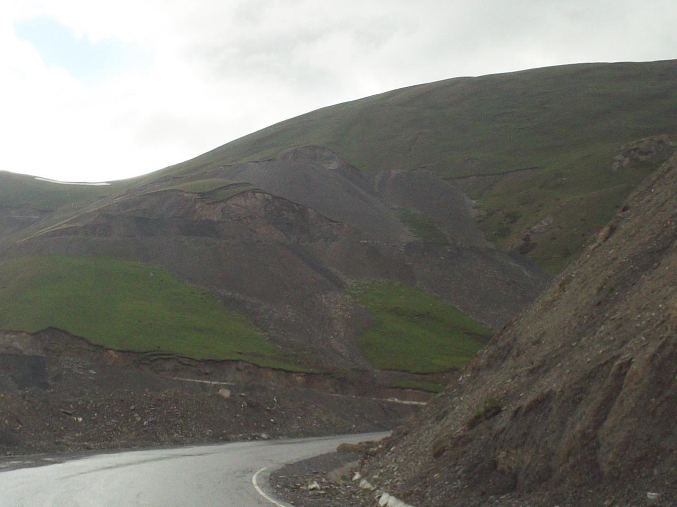 I went down to where the cars were waiting and found out that there had been a massive landslide that was blocking the road, and it was going to be blocked for at least two days apparently. A trio of motorcyclists were also there and trying to work out how to get down. One of them, a British man named Wilko, was very friendly and rode down to where the landslide was to see if there was a way to get over it. He zoomed back and declared it impossible - the rock was four trucks high. But we spotted a trail down the mountainside that zig-zagged back and forth before rejoining the road below the landslide. It looked very steep but Wilko offered to help me get my bike down.