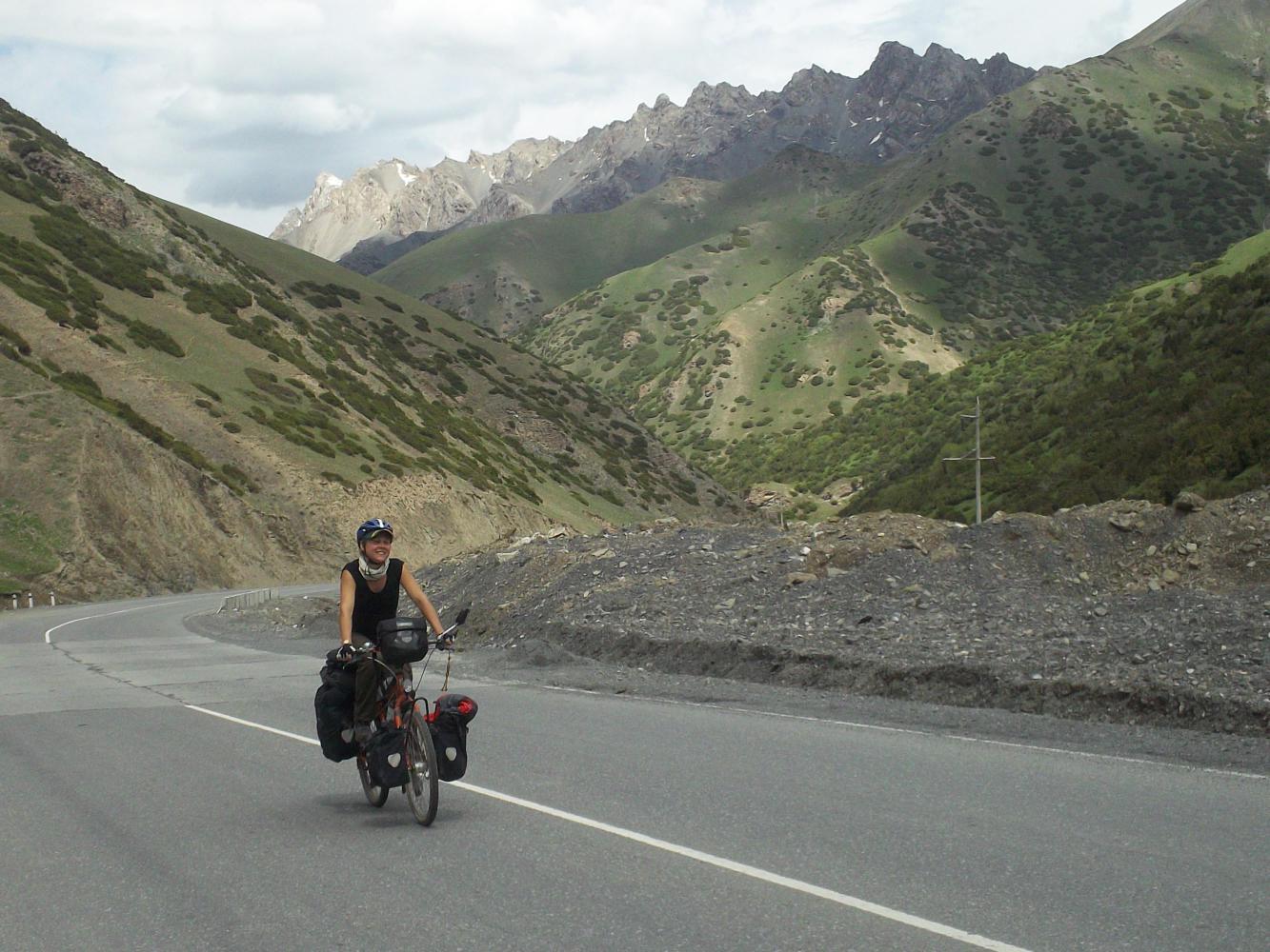 The next morning I offered to go back up the mountain in order to help Ana get her bike up around the landslide. It was the only course of action a real honourable gentleman such as myself could make really. She responded by saying I should drink some kumus and asked a small timid woman from the nearest yurt if we could have a glass. Ana explained to me that kumus was the national drink and that everyone drank it, a kind of Kyrgyz Irn Bru. Hard to believe any national drink could taste worse than Irn Bru, but perhaps not so hard to believe when I tell you that kumus is fermented horse milk. I won't try and describe what I tasted as I took my first sip, no doubt you can imagine, and I wouldn't want to put any of you reading this off your dinner. Fortunately Ana had told me that if I didn't like it she would drink the rest, an offer that I held her to. I watched her as she downed the glass, and inserted the occasional "mmm" and "ahh" of satisfaction in for the benefit of the watching woman. Ana had been in the country for more than a month, and I had to admit she was a real pro at the 'pretending to like fermented horse milk' game.