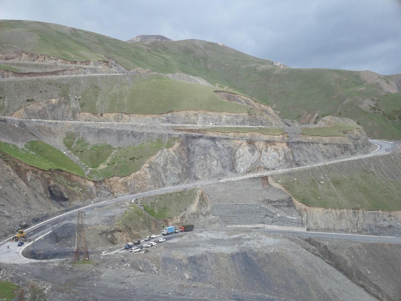 Okay so here is a picture of the landslide. The huge gouge in the top middle of the picture is what had fallen, and below that to the right you can see it half covering the road. The day before it had been twice as high.