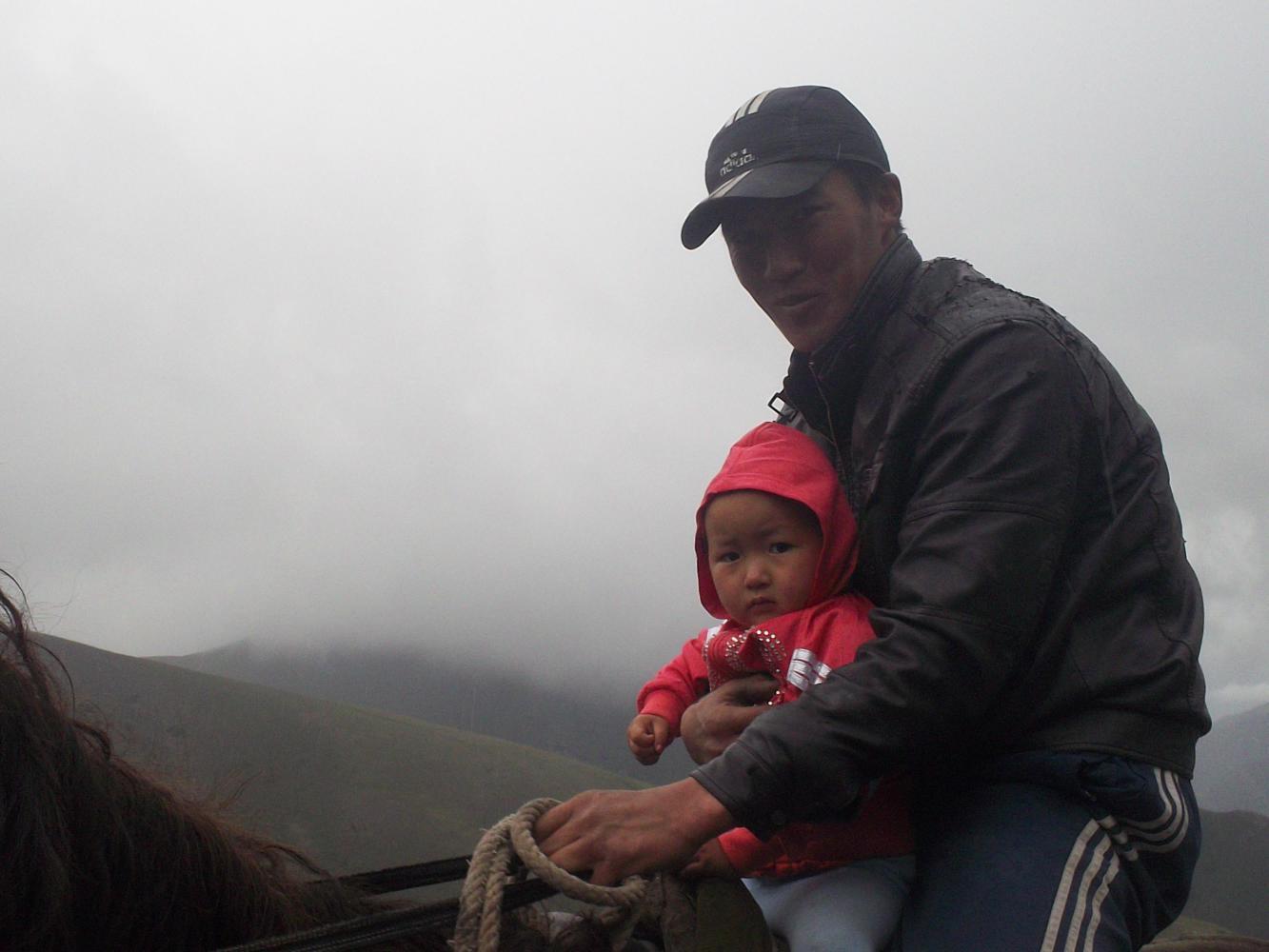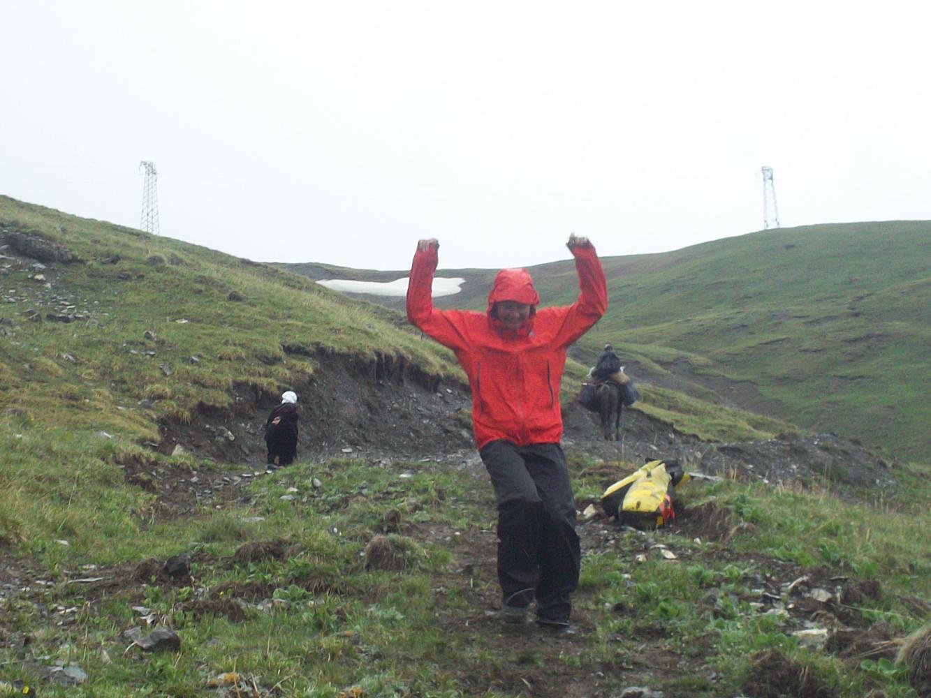 We arrived at the point where the road was closed and headed for the track that I had taken before. I had rather optimistically believed that the two of us would be able to push the loaded bikes up between us, but the way was rather steeper than I remembered and there was no big motorcyclist to help. It actually took both of us to push the unloaded bikes up, and the bags had to be carried up separately. There were five switchbacks in all, and the whole process took more than an hour of back and forths. And to make it more fun it was raining again. There were plenty of people walking up the side of the mountain to get between taxis on either side, and a couple of entrepreneurs on horseback were offering to carry people or their bags up for a small fee. I wasn't having any of that though, poor horses, and Ana and I completed the job under our own steam.