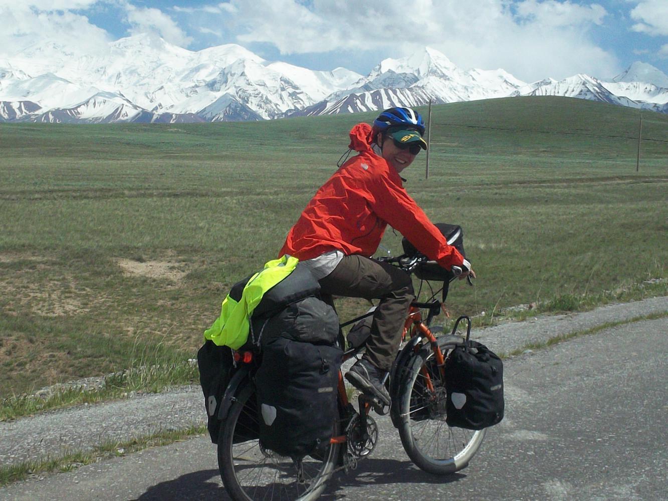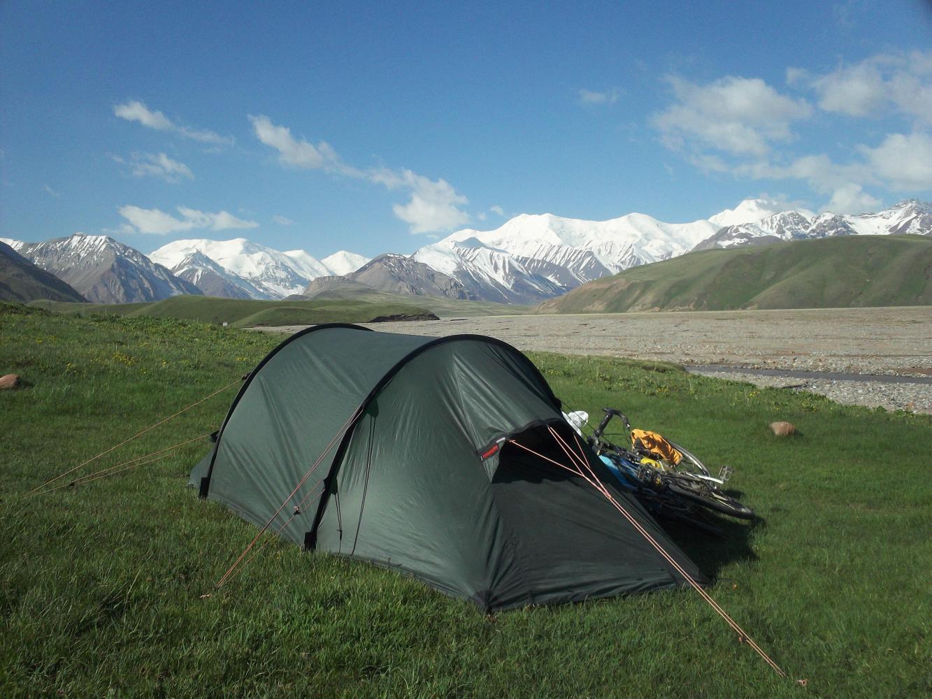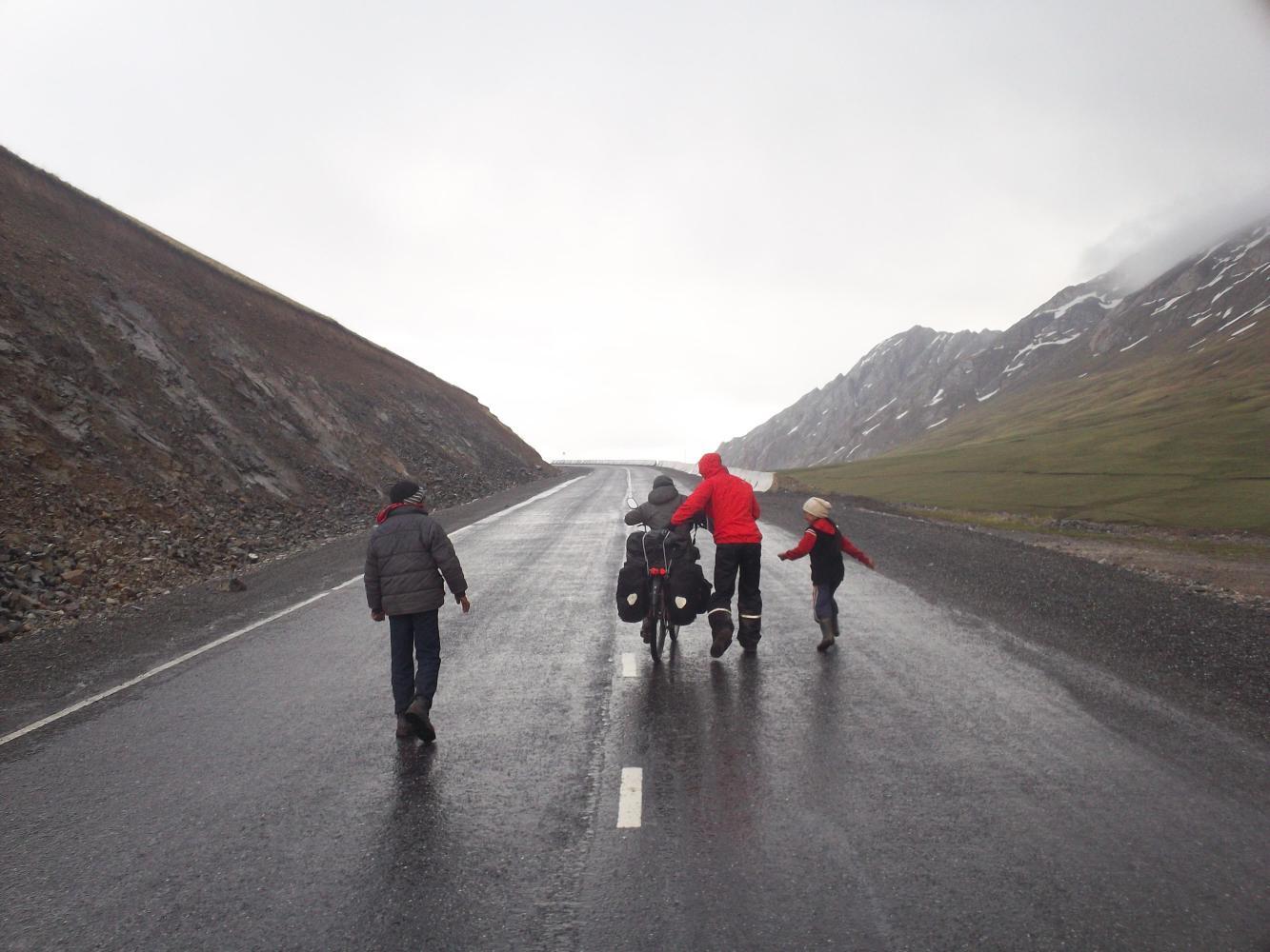 We cycled the rest of the way up the two passes and then had a nice long descent into Sary Tash, where I guessed I had to find an old man stinking of cigarettes to apologise to. But it was another familiar face that caught my eye as we rode towards the village, a motorcyclist zooming past in the opposite direction and then turning to come back and talk to us. Of course it was Wilko. Unable to get past the landslide he and his buddies were camping near Sary Tash, and he was now riding up to have a look at the current situation. Its so easy on a motorbike isn't it? As for what I myself was doing back on the wrong side of the landslide, well, that took a bit of explaining.