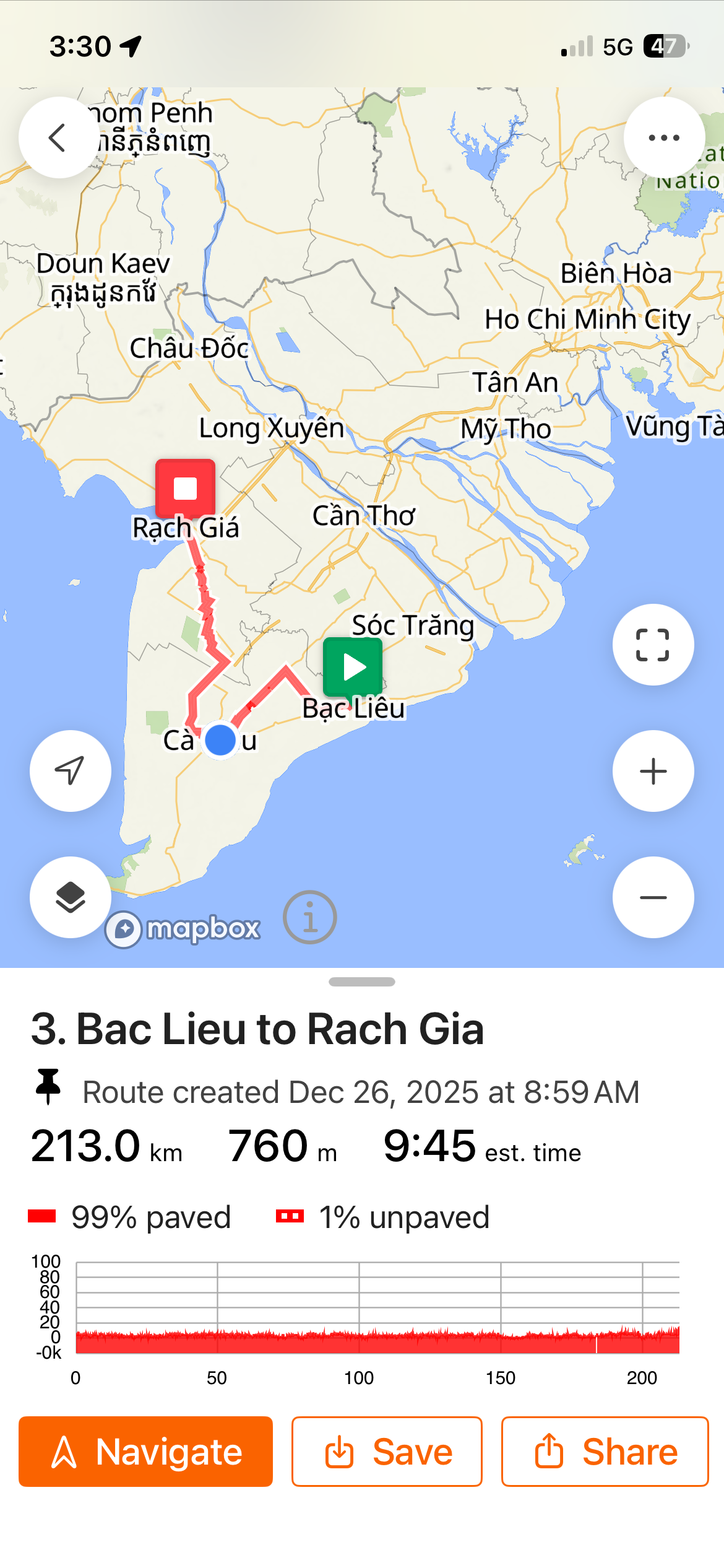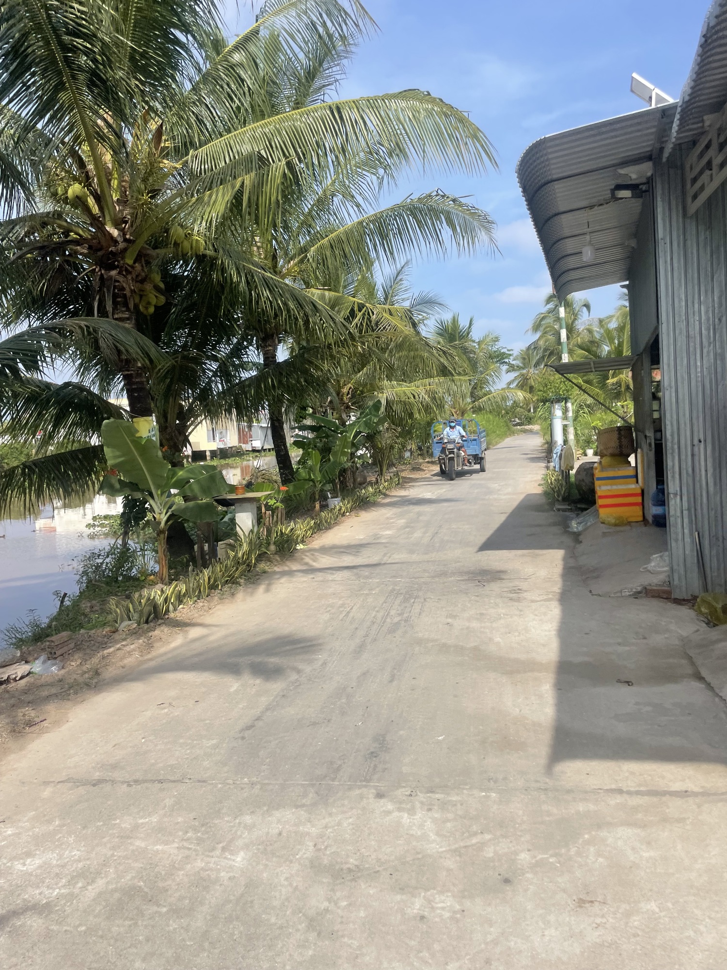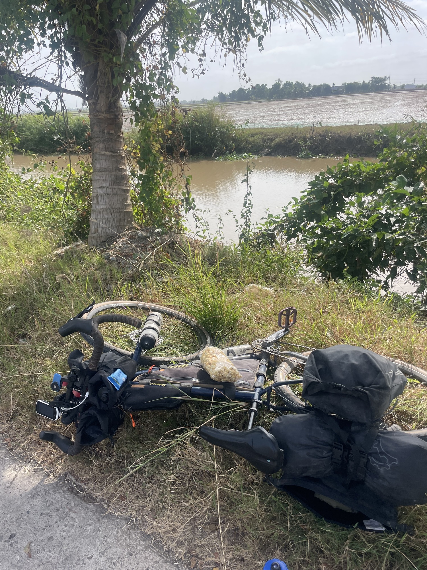 All day I rode off of main roads. I wasn’t almost exclusively hugging rivers and riding through agricultural areas. I’m in an area called the Mekong Delta. It’s known for rice and rich soils. I find it interesting to see how towns and cities and farming develops. Here all the housing seems built along the river and then behind are fields where they use the river to flood the rice fields.