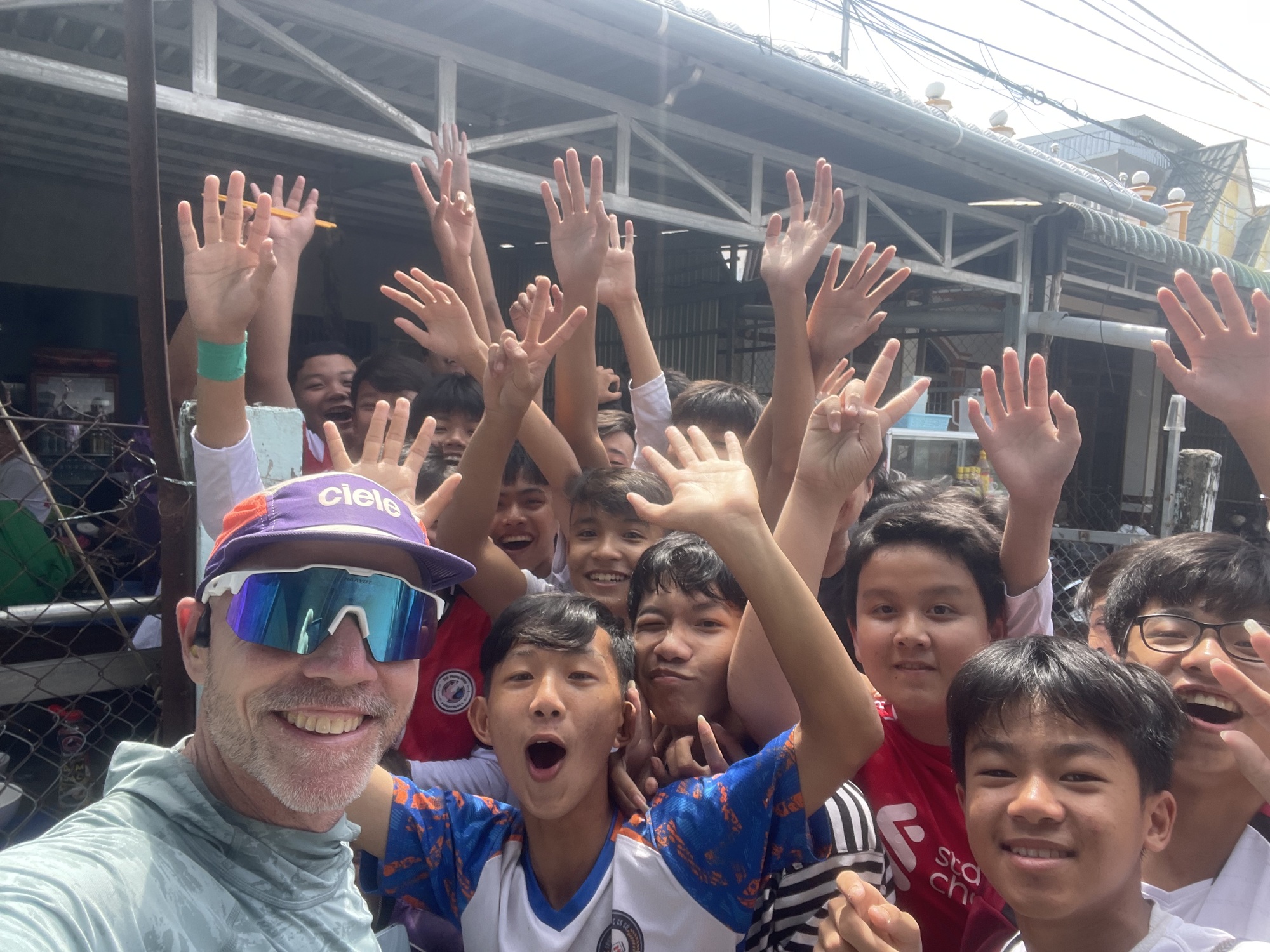 After lunch I continued plugging my was down the river. At one point I came upon a soccer/football pitch about 1/4 size inside a fence. It was really out of place to the surroundings and I saw kids so I stopped. It was crazy. They came running out to me. “Hello, my name is $-@ what’s your name.” I grabbed my camera for a selfie and they went wild. It all felt energizing but also overwhelming as everyone was in my personal space. I ended up smiling and saying goodbye and riding off.