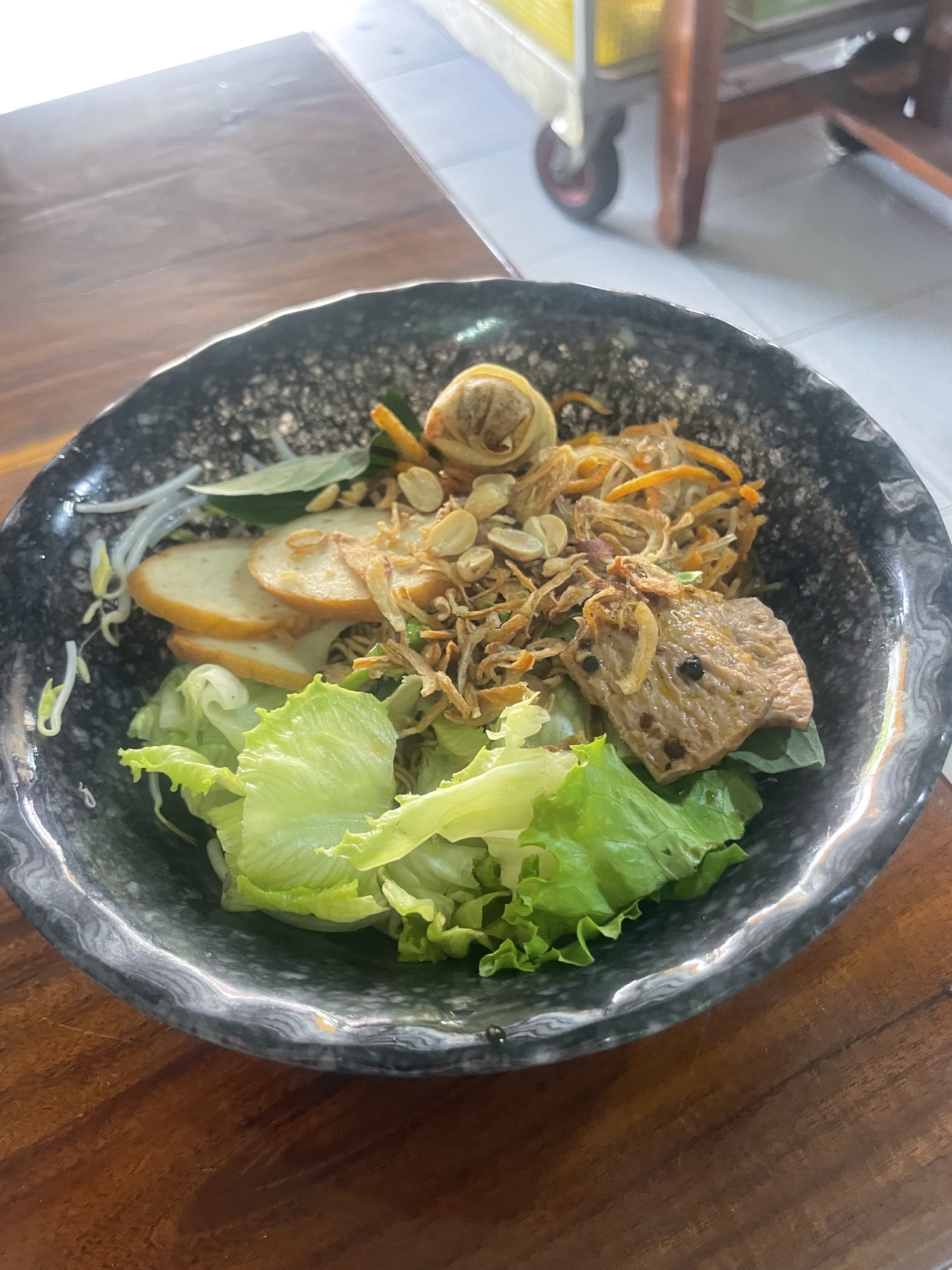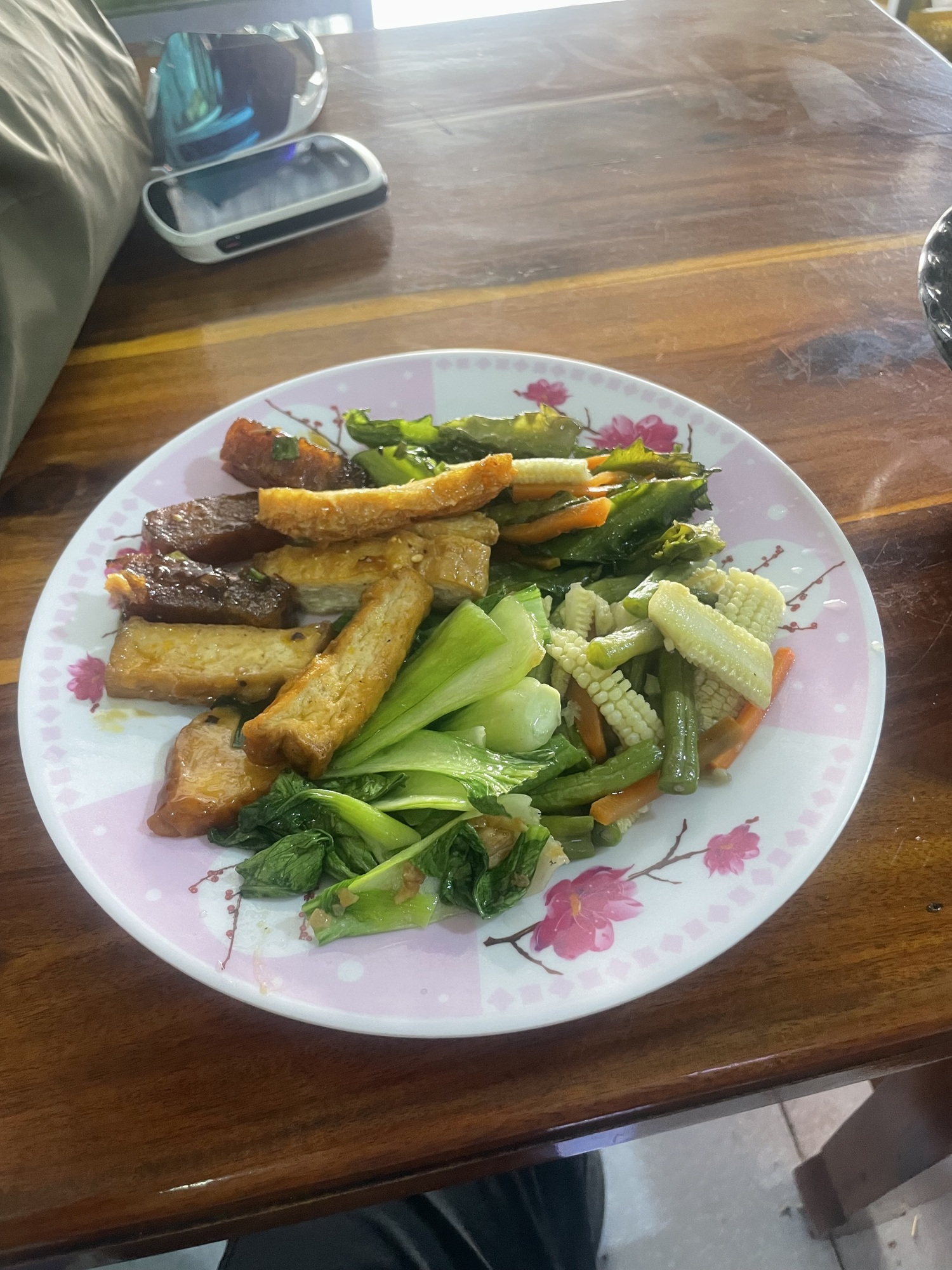 It delivered! It was a couple inside and three tables. I sat down, ordered a beer, and then she showed me all the different food. I just motioned all of it and I had a delicious feast. That was the best meal I have had yet. There were 5 different styles of tofu, noodles, vegetables and lots of salt and sugar which I crave riding. They were fun as well and we laughed and smiled lots.