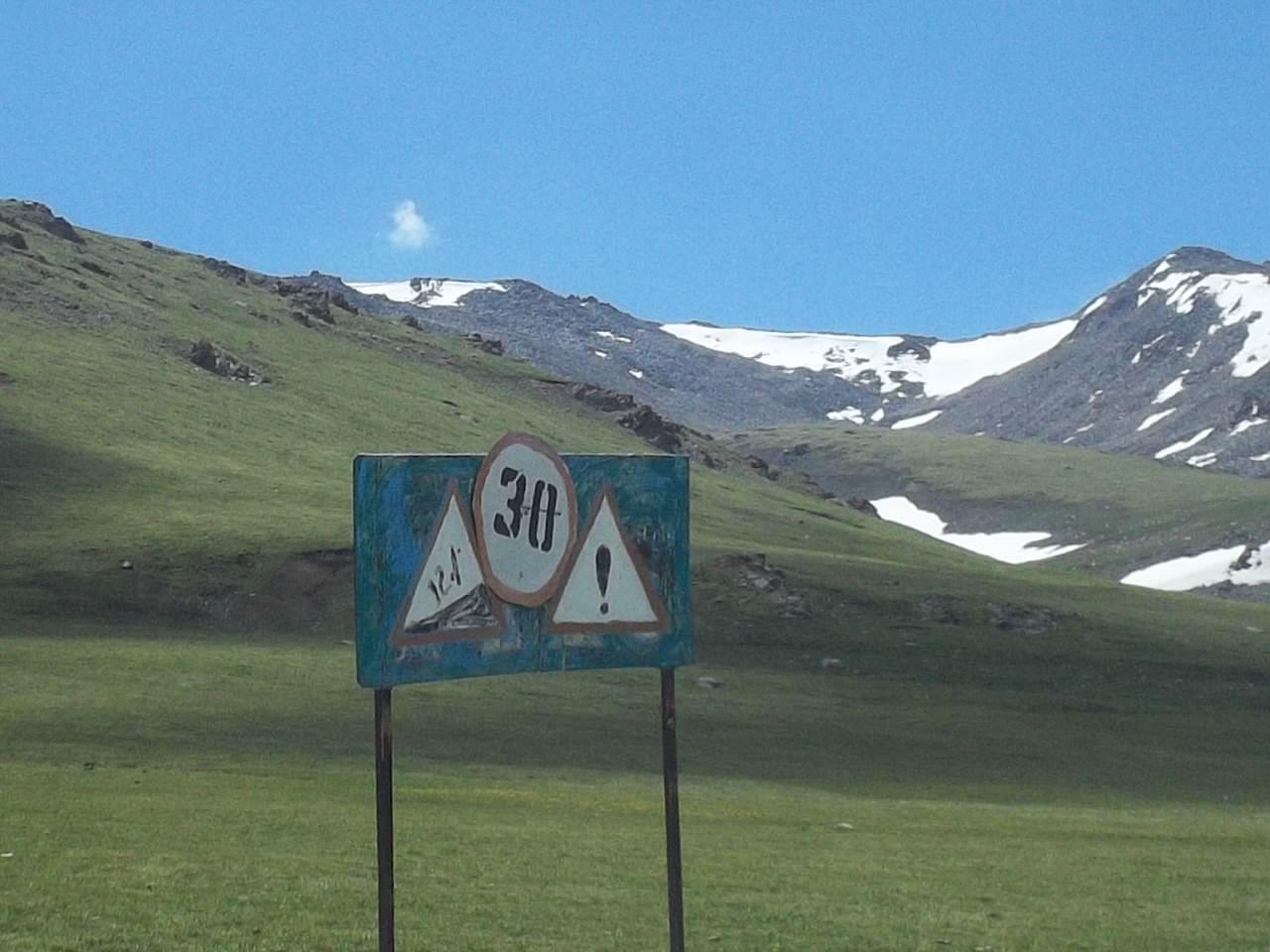 So the road was good, but dull, save for the occasional meeting with other cyclists. I met a Dutch couple that were cycling around Kyrgyzstan, although they had almost no stuff on their bikes. The reason for this was that they had hired a vehicle from a company called 'Eco-tours' to follow them carrying their gear. I would have thought a better idea for an 'eco-tour' would be to carry the stuff on the bikes like everyone else and not have the vehicle at all. It was a terrible misnomer and I should have liked to tell the company so, although I agree that 'Un-Eco-Tours' doesn't have quite the same ring to it. So I said nothing, and we talked about the football.
