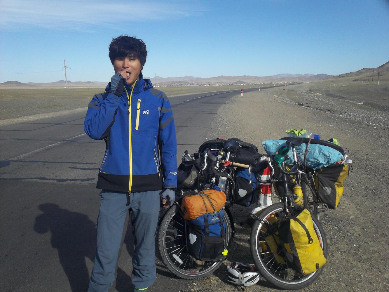 Amazingly enough I came across another touring cyclist the next morning as I approached Bayankhongor, the big town which marked the end of the paved road. This one was a young man from Korea with the easy-to-remember name of Bak Hyung Yeol. He was cycling a big loop, from Korea across China and then back via Mongolia and Siberia, which meant he had come from exactly the direction that I was heading, taking the border at Bulgan, coming through the mountains, and across the bad roads I would now need to cycle myself. I was keen to find out everything I could!