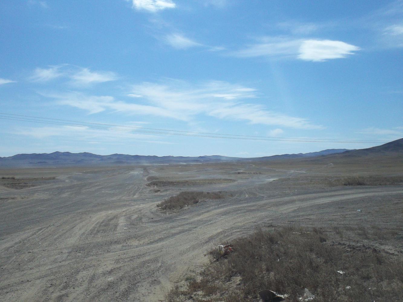 I went back to a gas station and asked the attendant which was the way to Altay. He pointed to the tracks to the left. It looked from the few clouds of dust on the hillside like that was the way most of the traffic was going, so I was happy, and set off in that direction. It wasn't half difficult though. There were six or seven tracks, all going in the same general direction, but all in pretty bad shape. The hill went on forever, a good 20 kilometres of climbing, made worse by a stiff headwind and the ridiculous amount of weight on the bike. I consoled myself thinking 'at least I don't have a hammer.'