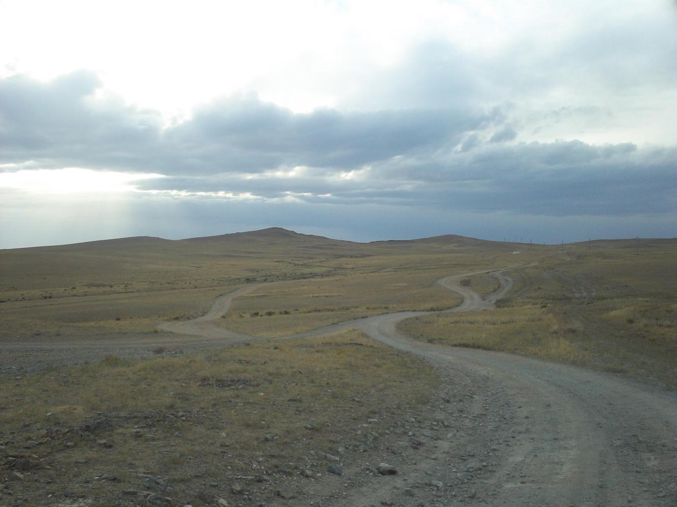 The tracks continued, winding their way up and down and around, criss-crossing, going this way and that. They were a bit bumpy but not awful, and it was quite fun trying to decide which track would be best. Getting off the asphalt, this felt like the real Mongolia at last.