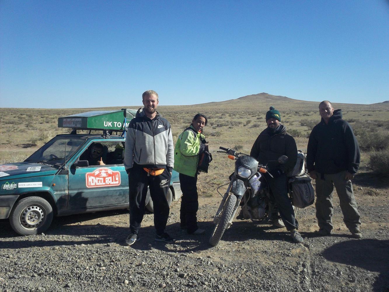 And the next morning the road got even worse. It was as if someone had come in and dumped a load more sand over everything, so I even sank into the washboard bits now. Then I saw yet another Mongol Rally car coming and it stopped next to me. "I'm glad when I see you guys," I said to the two young men sitting in it, "I know I'm still going the right way!" It was an Australian team and the two men looked similar, both with big beards grown during weeks on the road, but actually they couldn't have been more different, at least in their opinions. "Well," said the driver, "It's funny you say that, we're a bit lost. Is there another road?" By now I was confident that I knew what the deal was so I told them that there was another road to the south that went across the desert which was probably better and flatter, but that this one was nice and had better scenery and went through the villages.