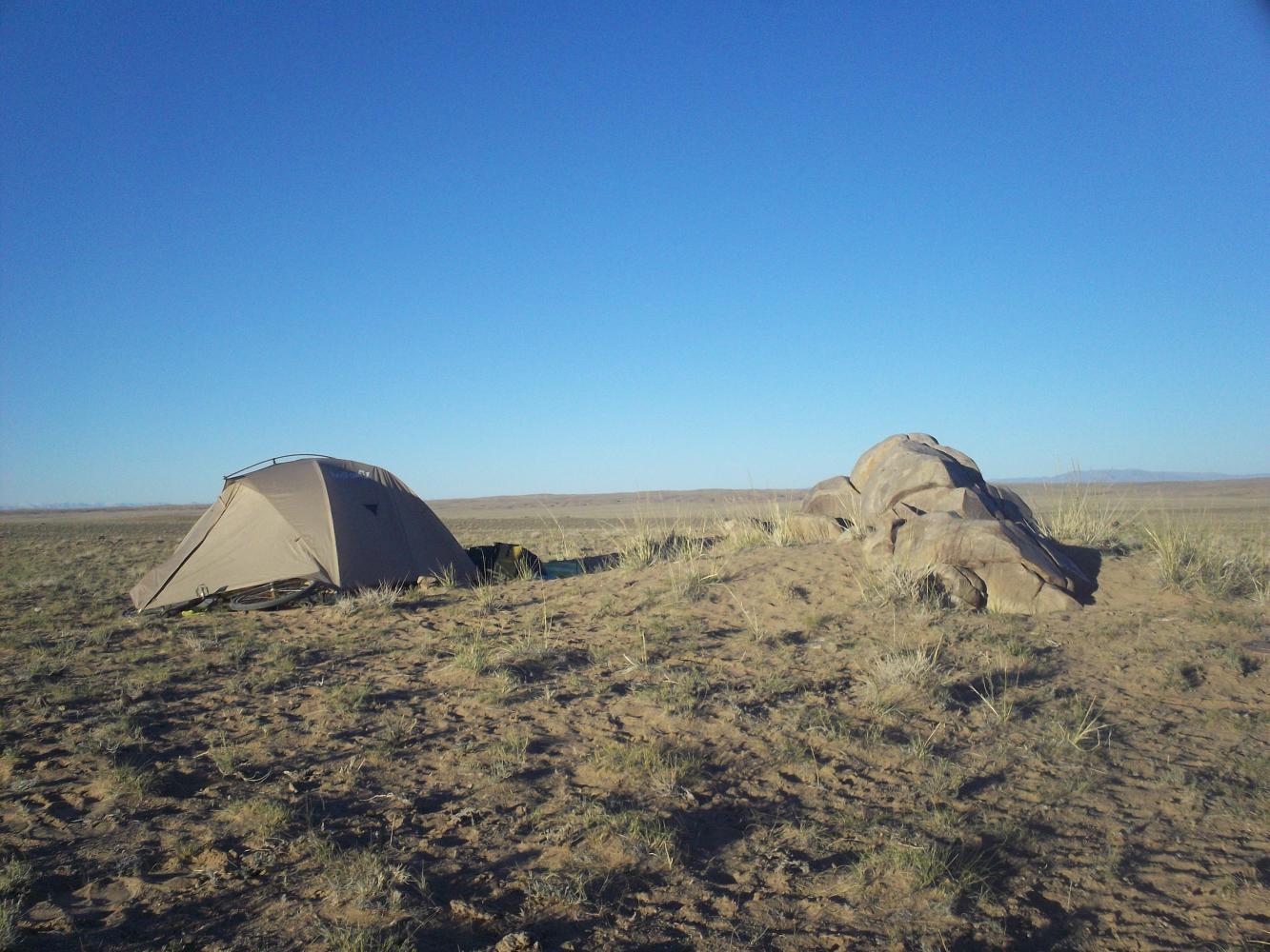 I needed to keep my daily distances reasonably high though, because I only had 30 days to get across Mongolia and actually I'd read that the border would be closed on the weekend and my 29th and 30th days were a Saturday and Sunday, so I needed to do it in 28 days. The only way to do enough distance on days like this was to cycle all day and I rode from eight in the morning until eight at night, posting an underwhelming 59 kilometres for the 12 hours of effort. To put that in perspective, at that rate of progress had I been competing in the London Marathon I would have finished last, just behind the fat man who tried to run it in a deep-sea diving costume.