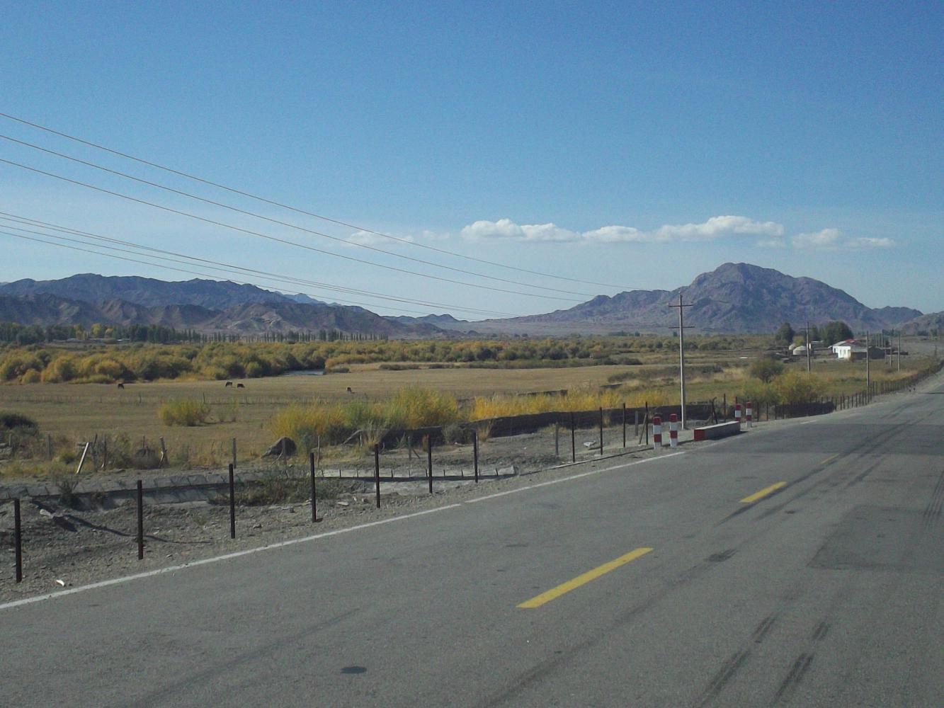 But there were good things. First of all there were trees, which I noticed were turning a pretty yellow and reminded me that it was autumn, a season that I love cycling in that I'd almost missed. The river in the valley that I was in had actually been used to irrigate things and I was also taken aback by the simple sight of fields of grass and farmhouses.