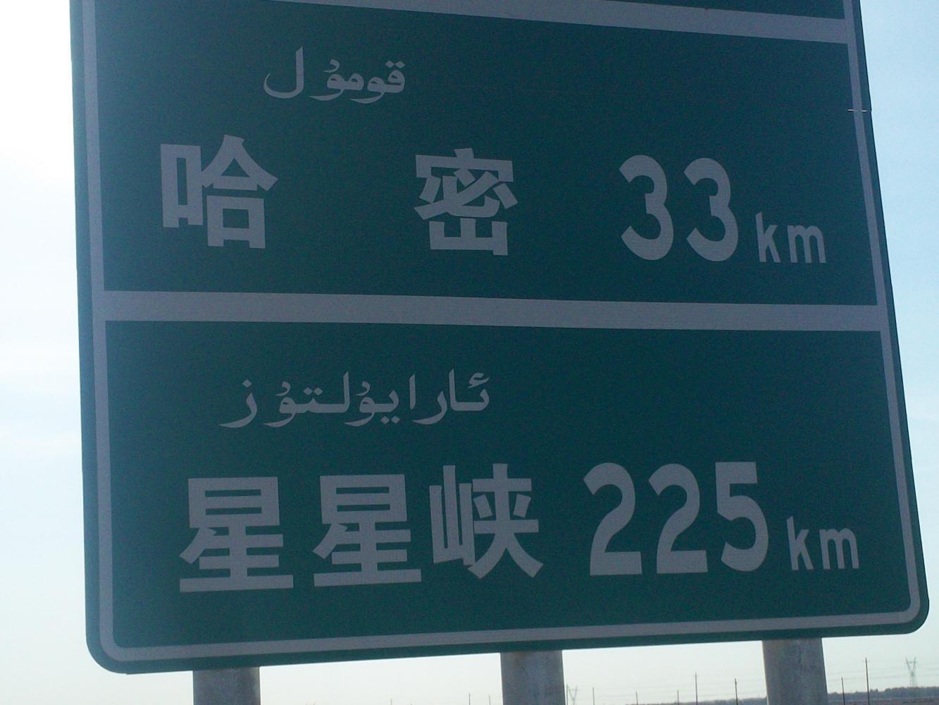 Aside from amusing myself with the signs I was finding the going difficult indeed. I was still cycling on the G30 expressway surrounded by desert which was just so completely and utterly boring. I felt alone again, and all I could see ahead was thousands of kilometres of the same. As I got closer to the city of Hami I switched to the G312, thinking that it would take me through the centre but it actually bypassed the city too. It did take me through some populated areas though and I didn't get past the first hotel before stopping and checking in for the night even though it was only the middle of the day.