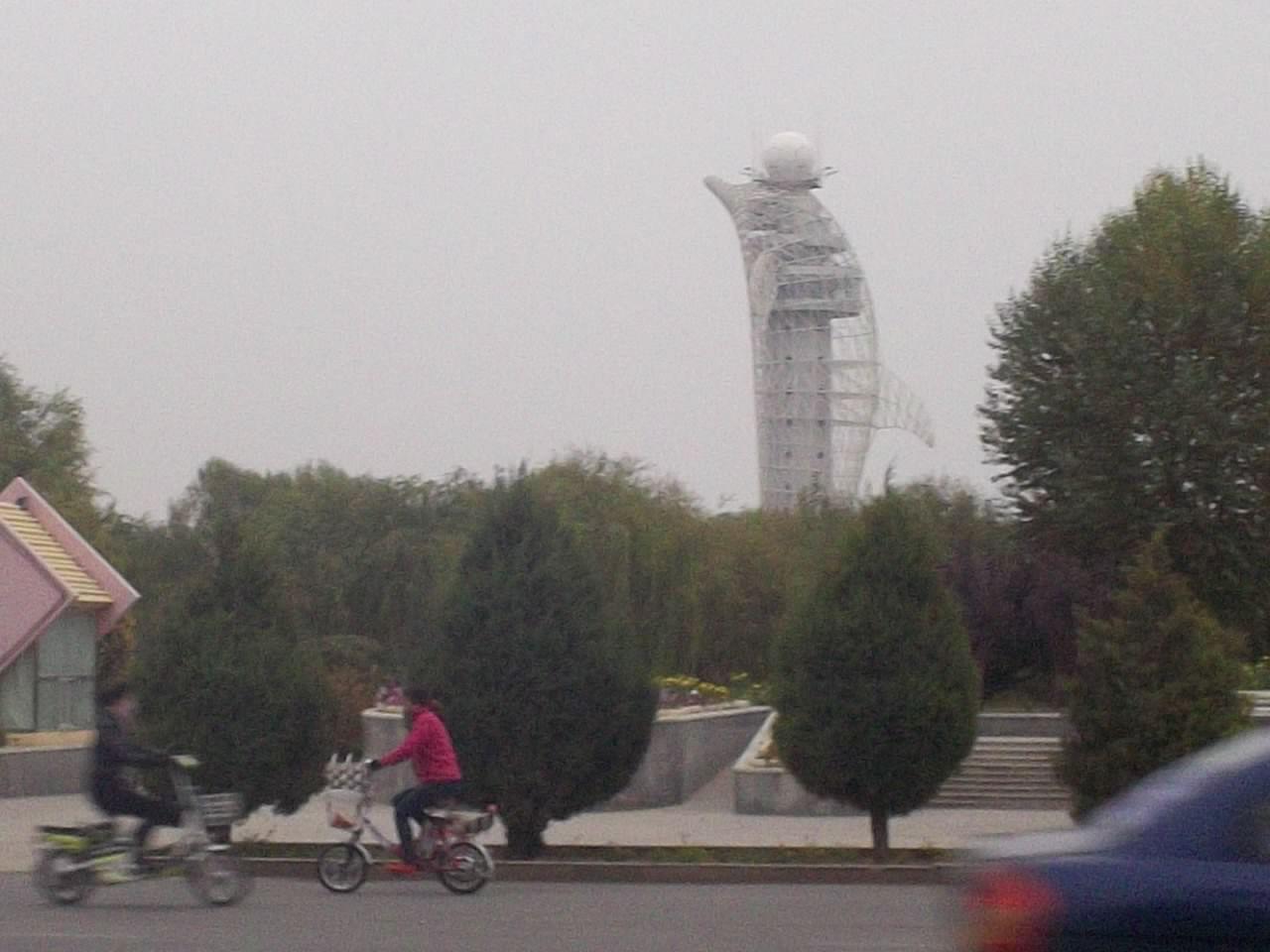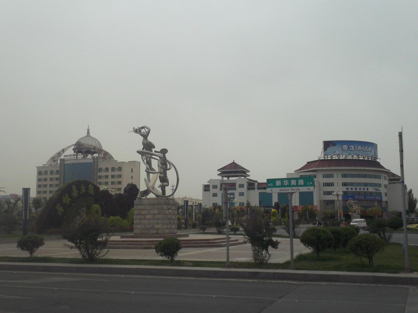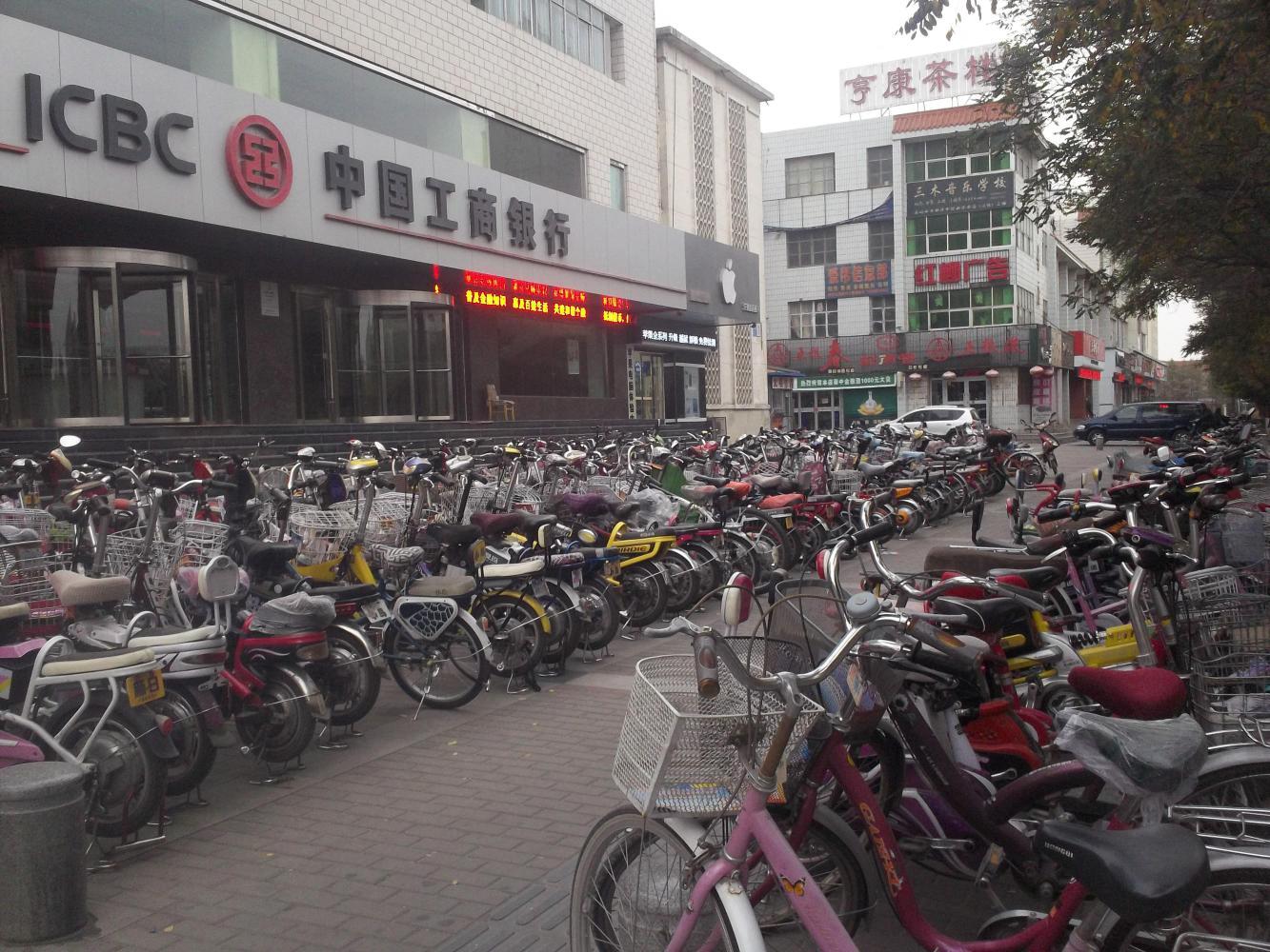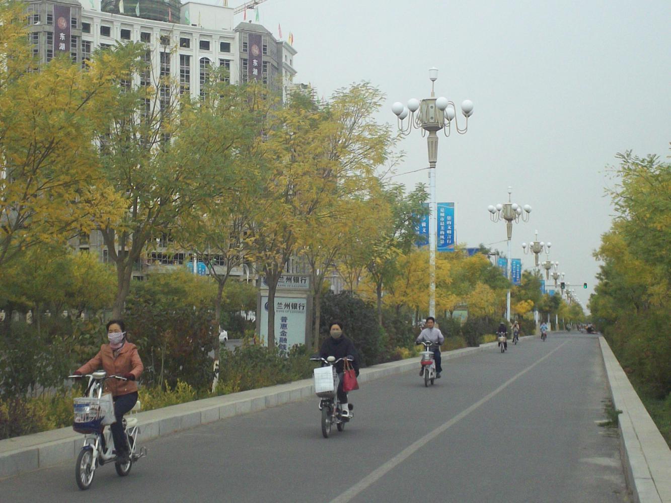 I got off the G30 at the main Jiayugan exit and cycled into the city. Against expectations my first impressions were overwhelmingly positive. The main street was a wide boulevard with a separated road on either side that was filled with bikes. It seemed more like being in the Netherlands than China, with bikes going everywhere. A lot of them were electric mind you, or motor scooters, but there were quite a few pedal powered ones too. And there was a lot of green - trees and plants providing a segregation between us and the main traffic that, at least at first, gave the impression of a safe and enjoyable place to ride a bike, and I fell even more in love with China.