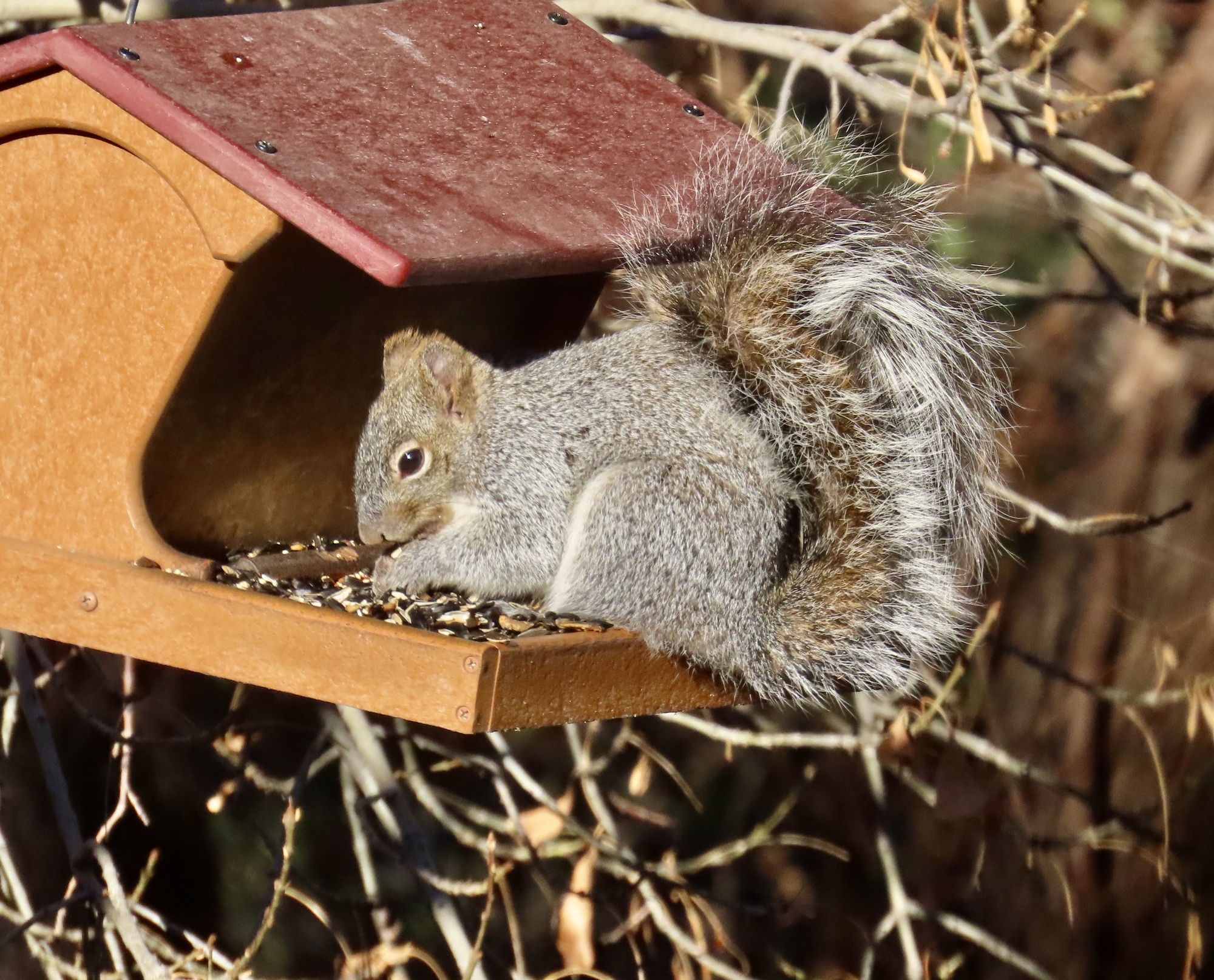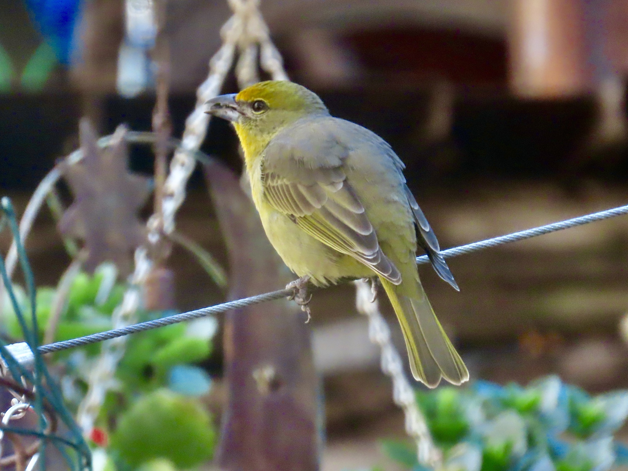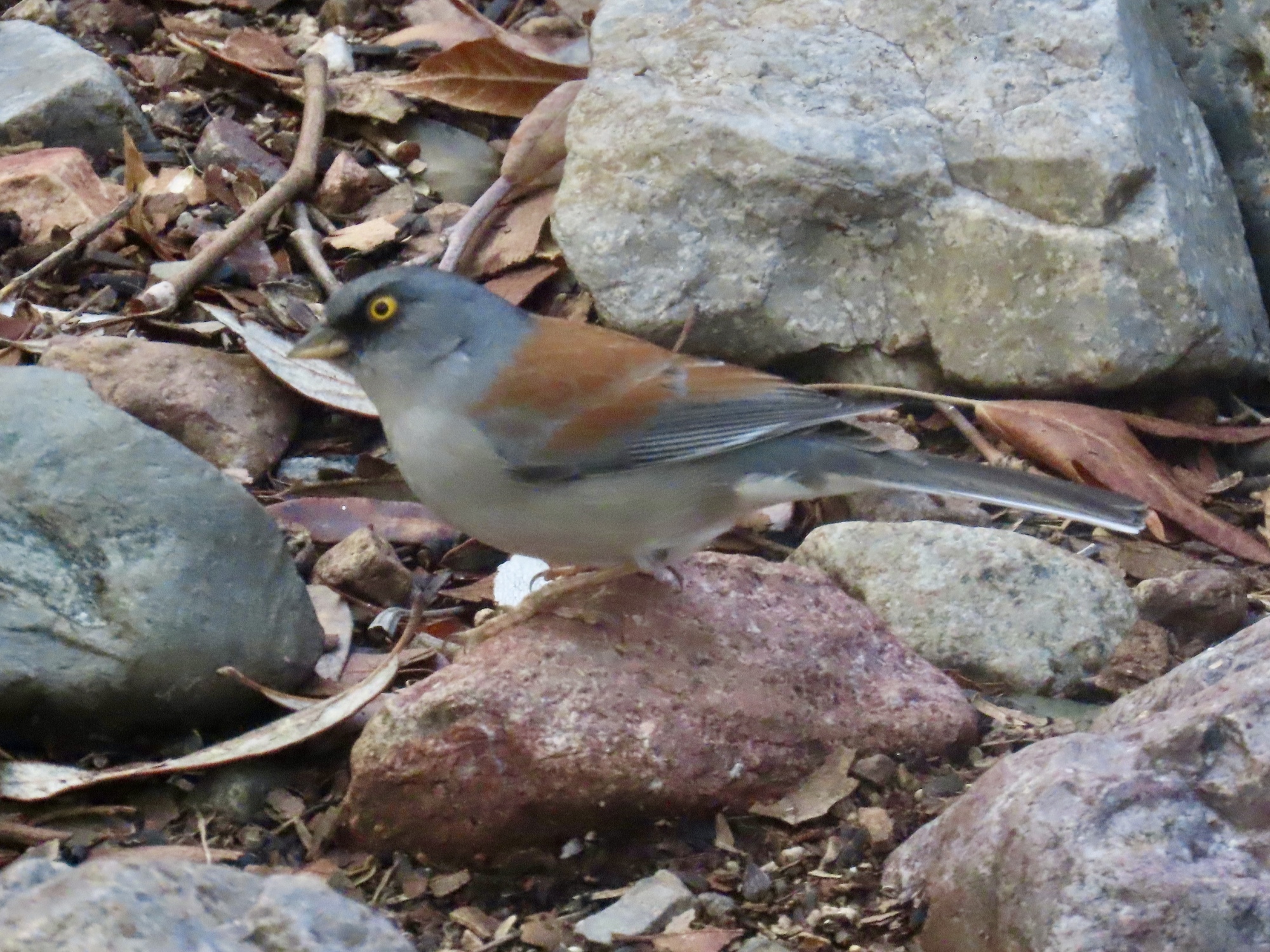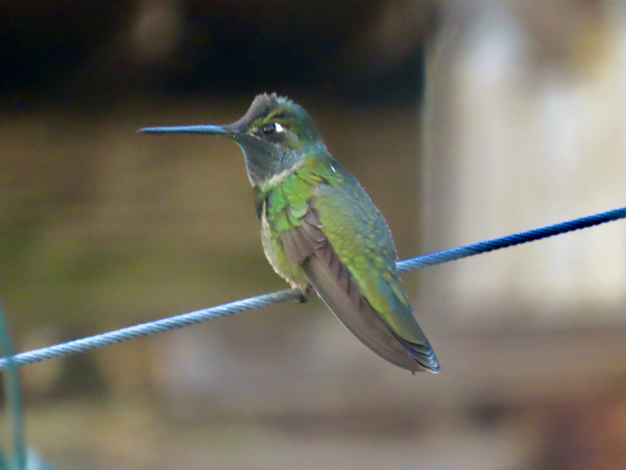 It's 8:30 when I pull in at Santa Rita Lodge, the birding epicenter of the park. It really caters to the birders, with a gallery of around a dozen chairs and benches lining a wall above the birding area. When I arrive it's still grey, with the sun just barely hitting the highest of the surrounding peaks. And it's cold, maybe not much above 40. I'm the first one there, and I'm disappointed to see that the gift shop isn't open yet where I could grab coffee and a pastry to help take the chill off.