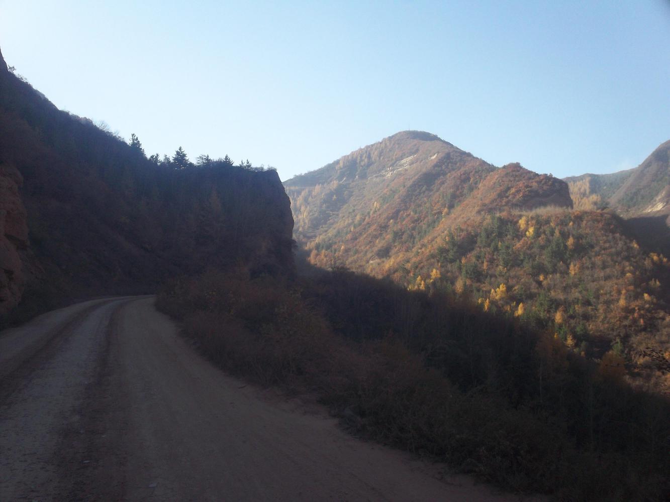 Beyond the city limits the road I took to the south predictably climbed up a pretty big mountain pass. Approaching the summit the road went through a tunnel, but there was a dirt road that led up and over the top and I decided to take this because I am afraid of the dark, and it proved a good decision. Even though the dirt road climbed steeply this was blissful cycling, not only because it took me away from the horrific... erm... you know... the erm... t-word, but also because I was in the mountains and the mountains were beautiful. Autumn was in full swing here; vivid oranges, yellows, greens, browns and reds vying for space on the cliffsides and here was the proof that the desert was once and for all behind me.