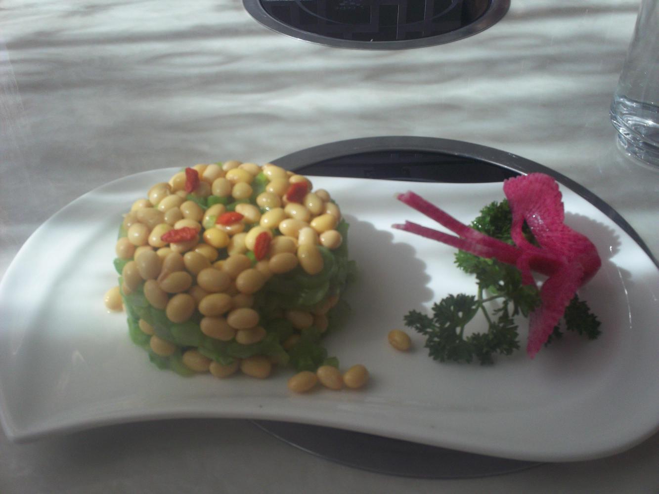 Hoping that I might have had some maps of the road ahead sent to me by some of my little pixie helper people out in cyberspace I stopped outside a rather fancy hotel and tried to steal myself some wifi. As the wifi had a password that wasn't going to happen, and so I went inside and sat in the restaurant to use it instead. It was, as I said, quite a fancy place, and the soybean dish I ordered was certainly above my usual dining standards, but, with food being cheap in China it was a long way from being the most money I'd ever splurged to gain Internet access.