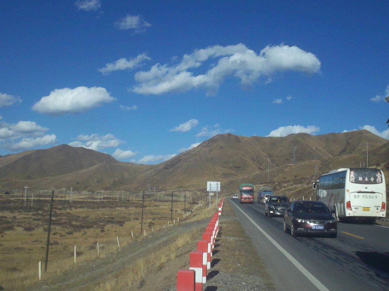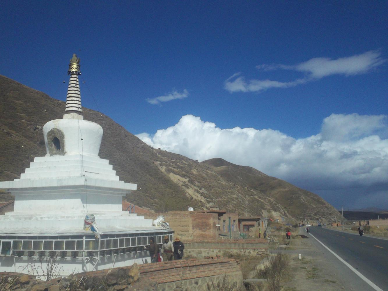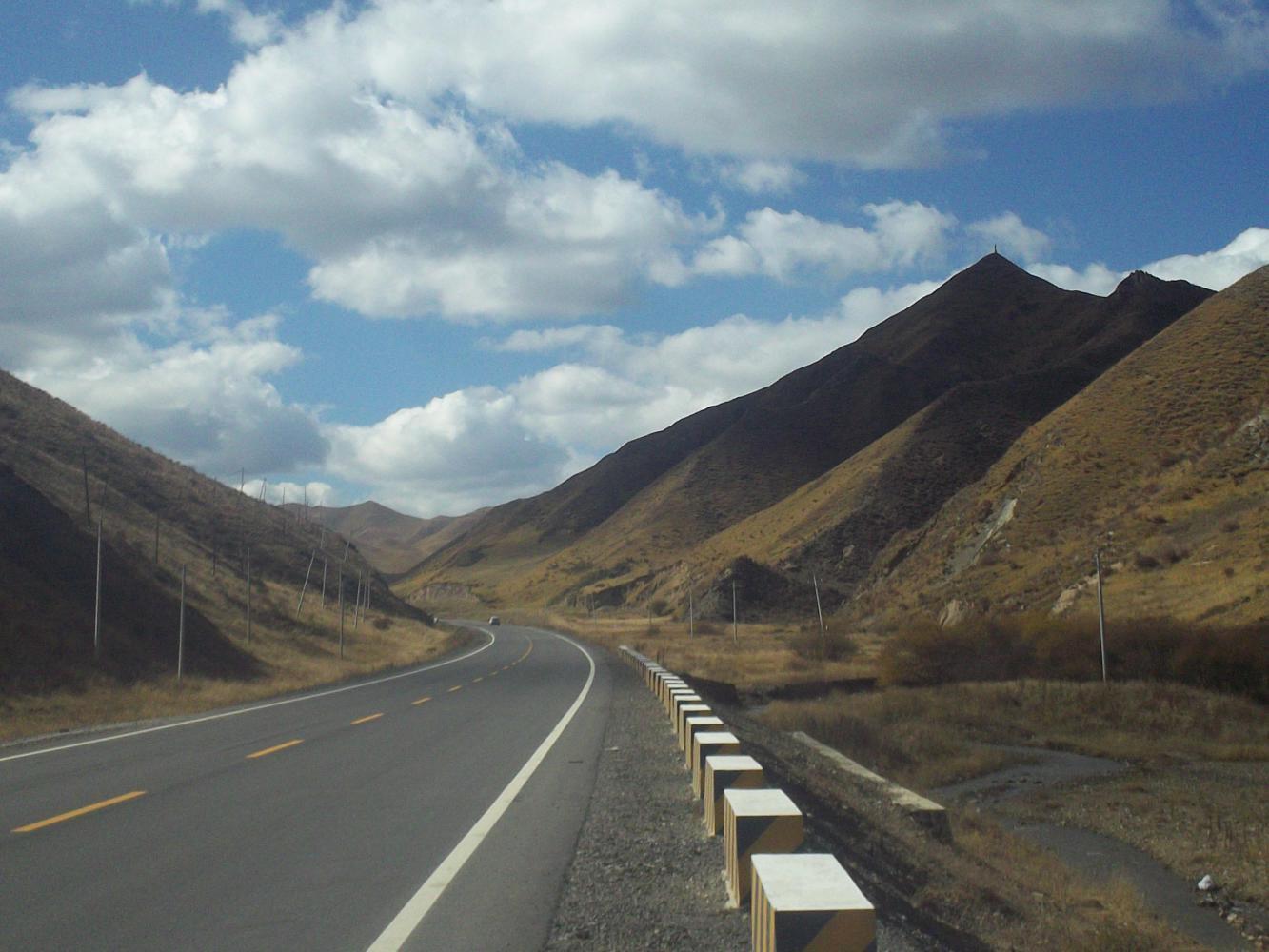 The road went up and over numerous passes. It was hard work, especially as the wind was against me. It was never flat, always either up or down. Whoever named this the 'Tibetan plateau' obviously had a thin grasp on the meaning of the word 'plateau.' 'Must be another one of those bad Chinese translations,' I thought as I struggled and strained on upwards.