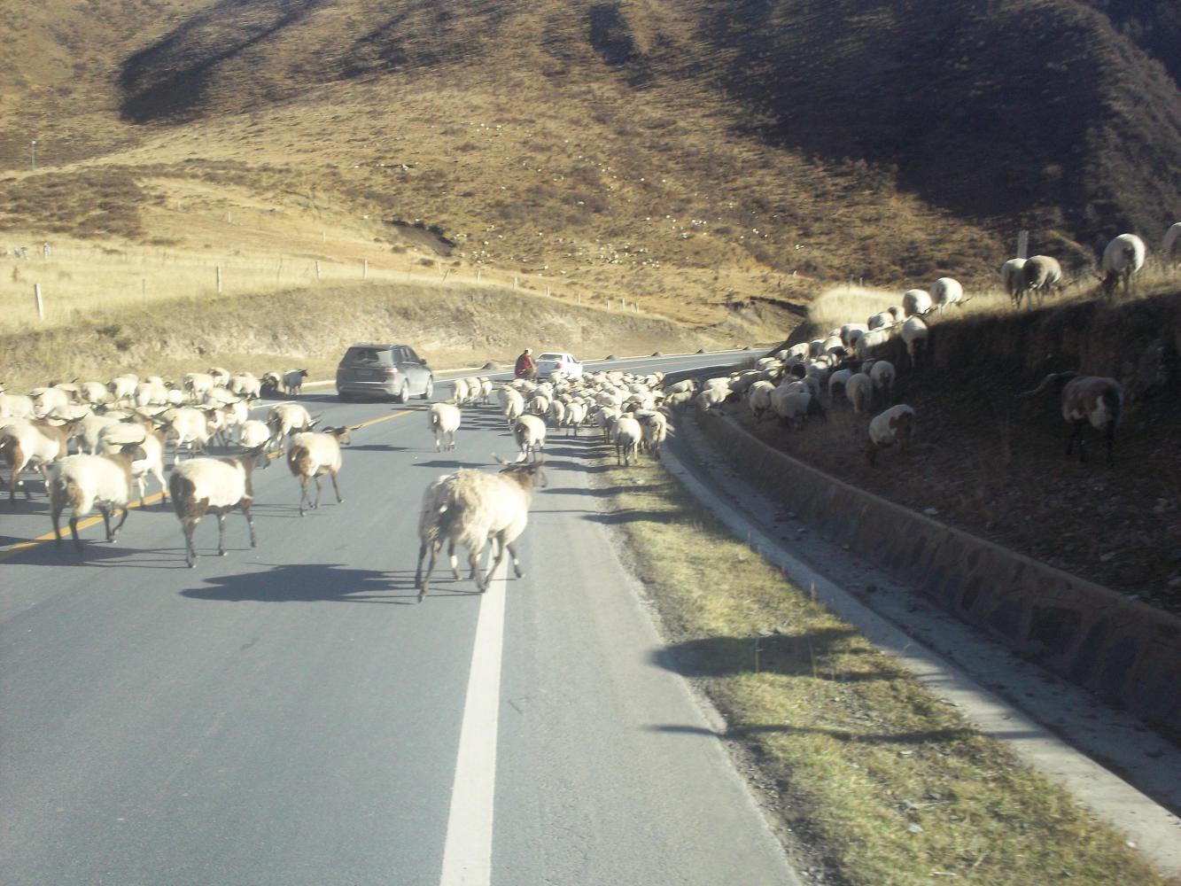 SPOT THE MONK! Did you 'Spot the monk!?' He was riding on the motorcycle being held up by the sheep in the road! ♪ ♫ Spot the monk, spot the monk, woo-wa-wee-woo, spot the monk ♪ ♫