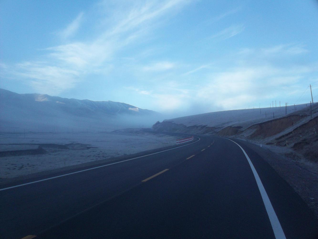 The road had grown less busy and I was relieved to discover most of the remaining Chinese drivers did have the sense to drive more slowly in the poor visibility. This at least partly compensated for the fact that none of them had the sense to put their lights on. I wore my bright orange hi-viz and considered myself the most visible thing on the road, and worried not. And for once I was glad that the road was still climbing, for it meant I could remain relatively warm as I battled on up.