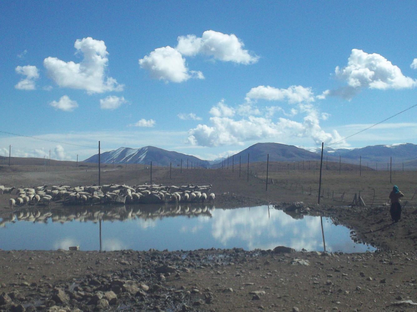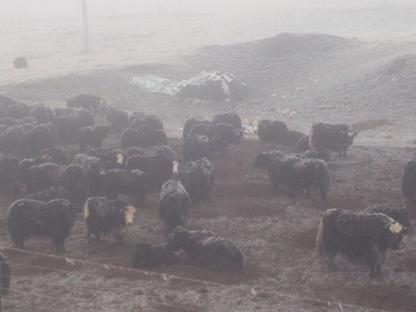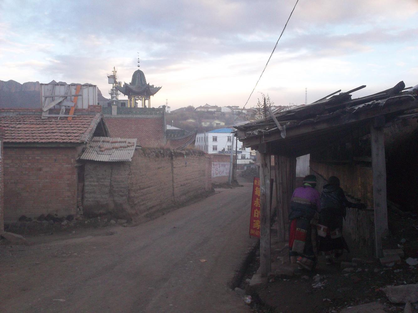 But the fog did not last and by midday the sun had happily taken control of the skies once more. I was growing to like this part of China more and more now, with the little Buddhist villages and the big open grasslands, snowy peaks dotted here and there beyond them.