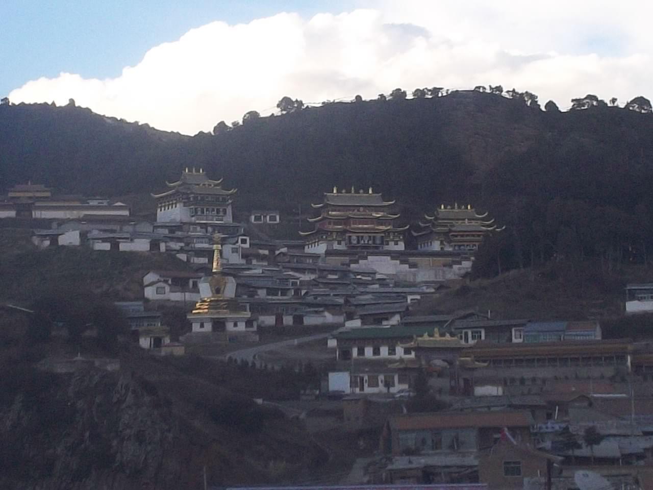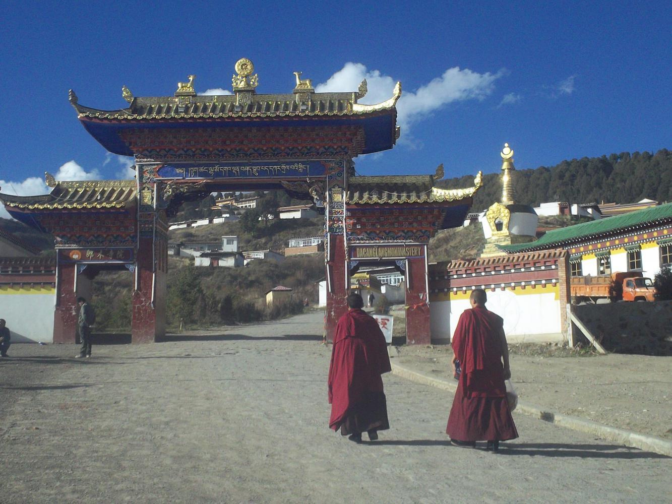 I went back down the hill and crossed the small river to the Sichuan side, hoping to find more, better-behaved, monks at the other monastery. As I made my way towards it I passed a hostel and, much to my bank balances consternation, found myself popping inside, just to see how much it would cost. The young man inside, who was very nice, told me it would by 30 yuan (£3), which I assumed would be for a dorm bed, and I thought reasonable. I asked to have a look, and he took me around and I saw that for 30 yuan I could, in fact, have myself a private room. And there was wifi! I was sold. As we walked back outside I asked him if there were showers. He shook his head and indicated that it was too cold. I assumed this meant there was a cold shower if I wanted one. I didn't. But for three quid you can't have everything can you?
