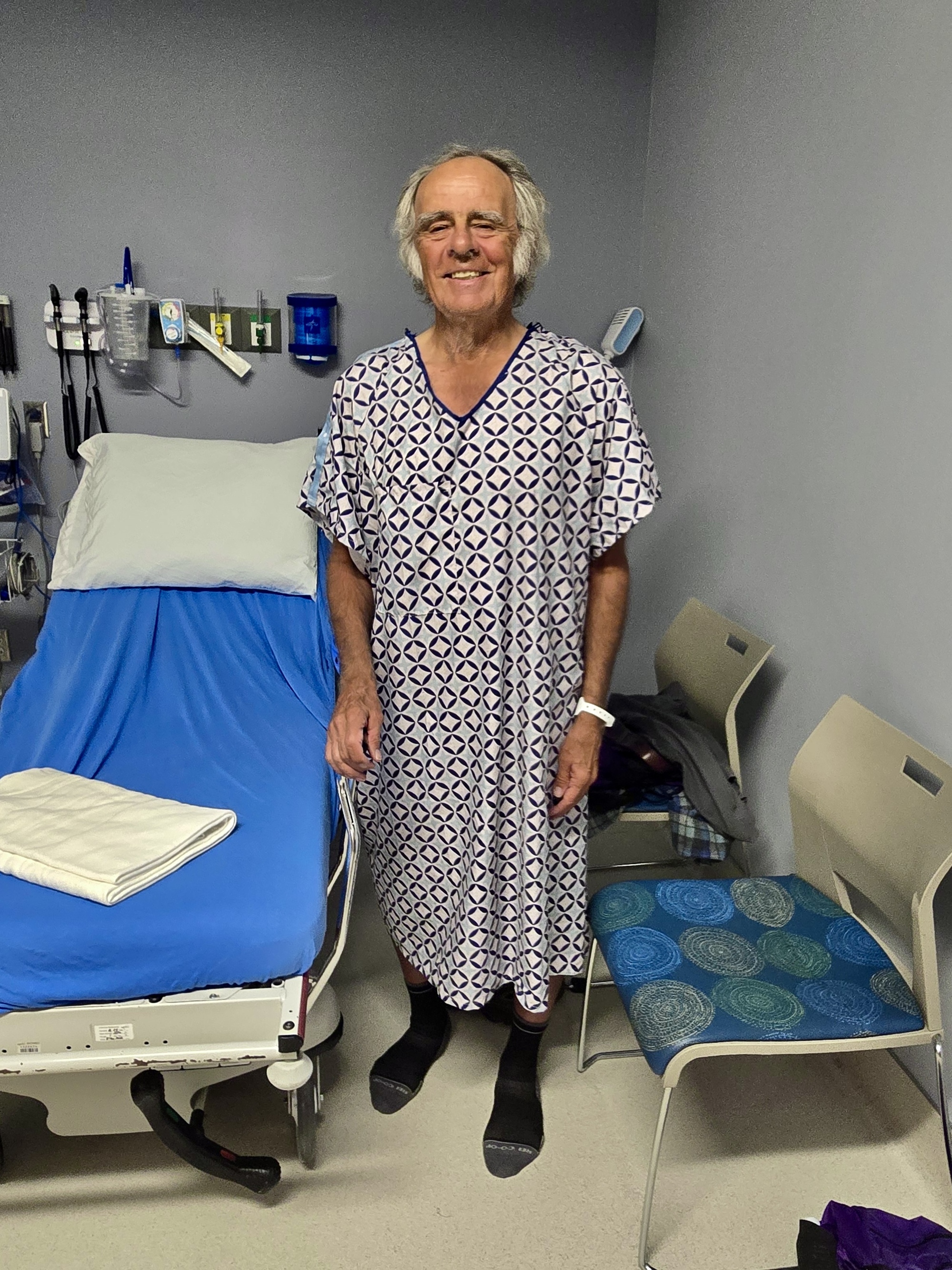 Five minutes later an aide enters the room, collects the fee, and then 20 minutes later a pleasant, calm young lady enters the room, wheeling her mobile ultrasound machine behind her. Another fifteen minutes later, her fondling and scanning work done here, she washes her hands, packs up the ultrasound, exits the room and we wait for the verdict.