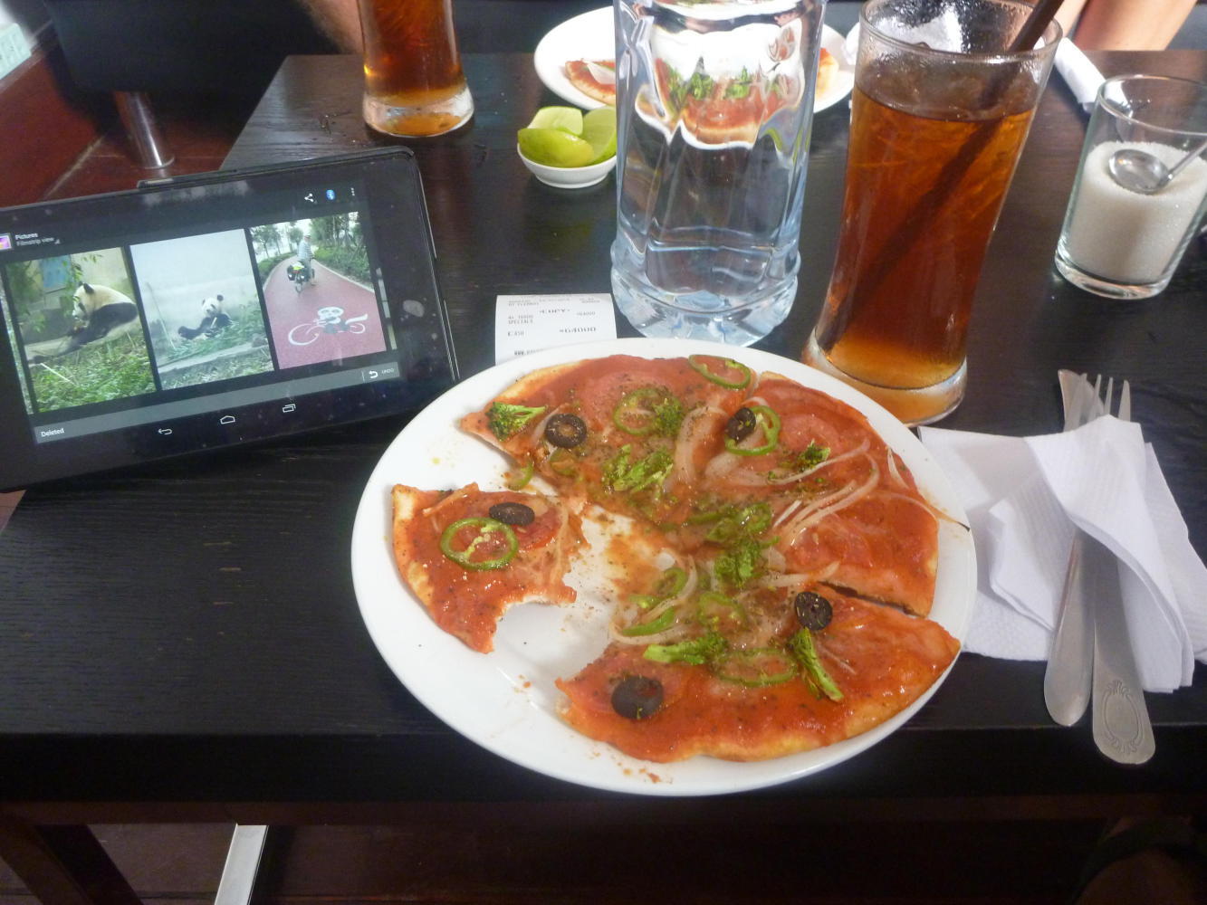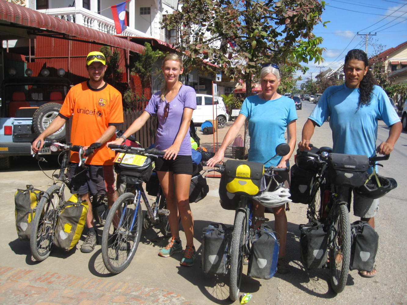Once upon a time Luang Prabang was the capital city of Laos and the seat of the royal family, until all that monarchy business came to an end in 1975 at the climax of the Second Indochina War, and it therefore represents probably the most important location in the history of the country. Nowadays it is more like the tourist capital of the country, with foreigners flocking to check out the mixture of Buddhist temples and colonial buildings in the surprisingly small town. Us hungry cyclists had our priorities straight though, and, recognising that the presence of so many tourists meant that western food was readily available, we first flocked to see the pizza and the french bread and the whatnot and whathaveyou.