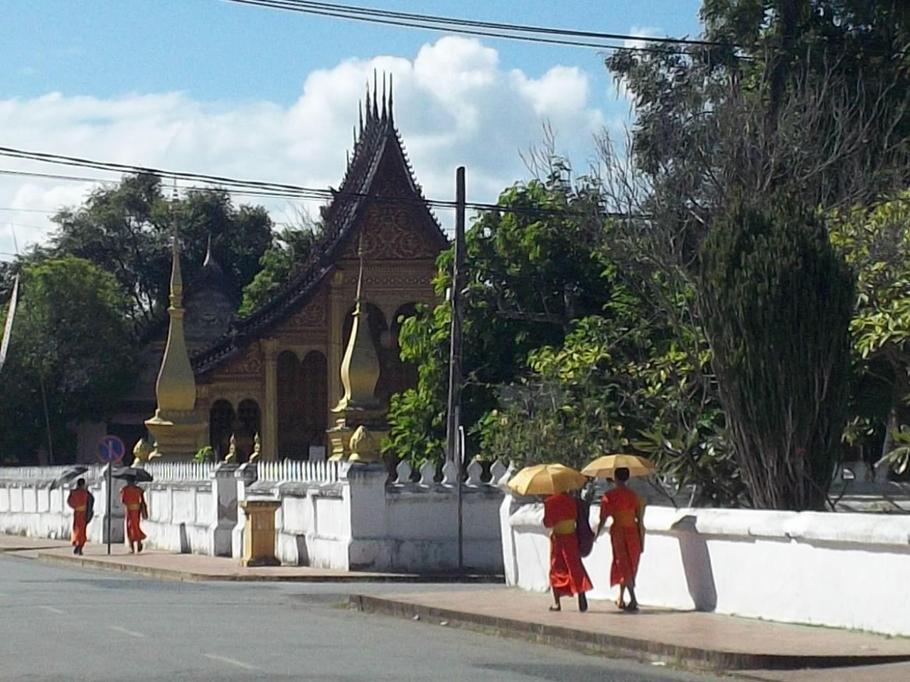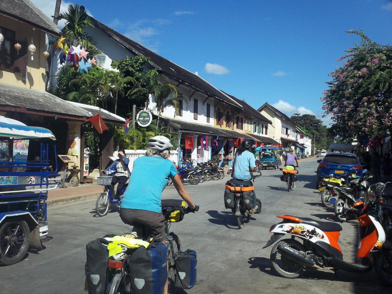 Before heading for the waterfall we made one last sortie into the centre of Luang Prabang to stock up from the French bakery. As befits our status as cycle tourists we bought only baguettes, the cheapest thing on the menu, and then simply stood in the street eating them whilst the more well-to-do tourists sat and sipped coffee and ate pain-au-chocolat and tried to pretend we weren't there.