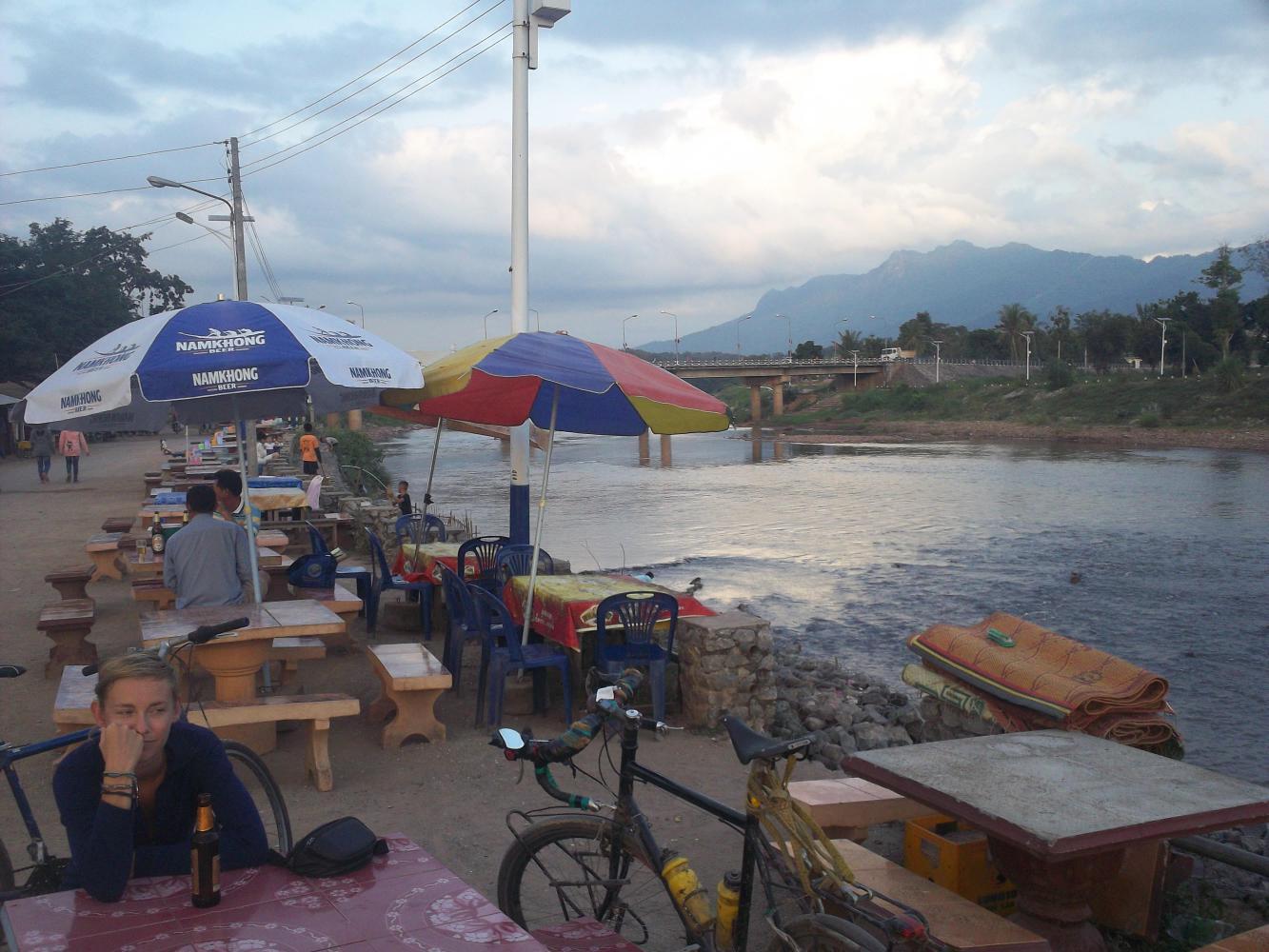 So we cycled onwards as a four, although I lagged a bit, struggling as I was with a headache, nausea and a poorly stomach. The hot sun did nothing at all to help alleviate these symptoms and I had to stop often although I had no appetite to eat anything. Dea patiently waited for me, but I told Suzy and Dino to go on to Sayaboury where they planned to eat lunch before pushing on. Their visas were almost at an end and they needed now to hurry along to Thailand, so this was going to be our last morning together. And I use the word 'together' quite wrongly because from then on they were nowhere to be seen as I laboured along painfully. It was a dire struggle for me, those last few kilometres, but finally I made it to the town and found my companions sitting in the shade of a restaurant.