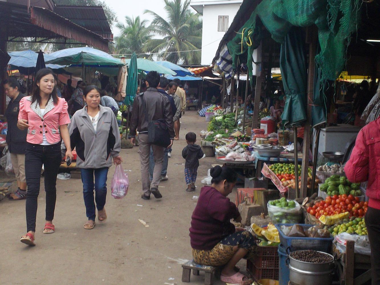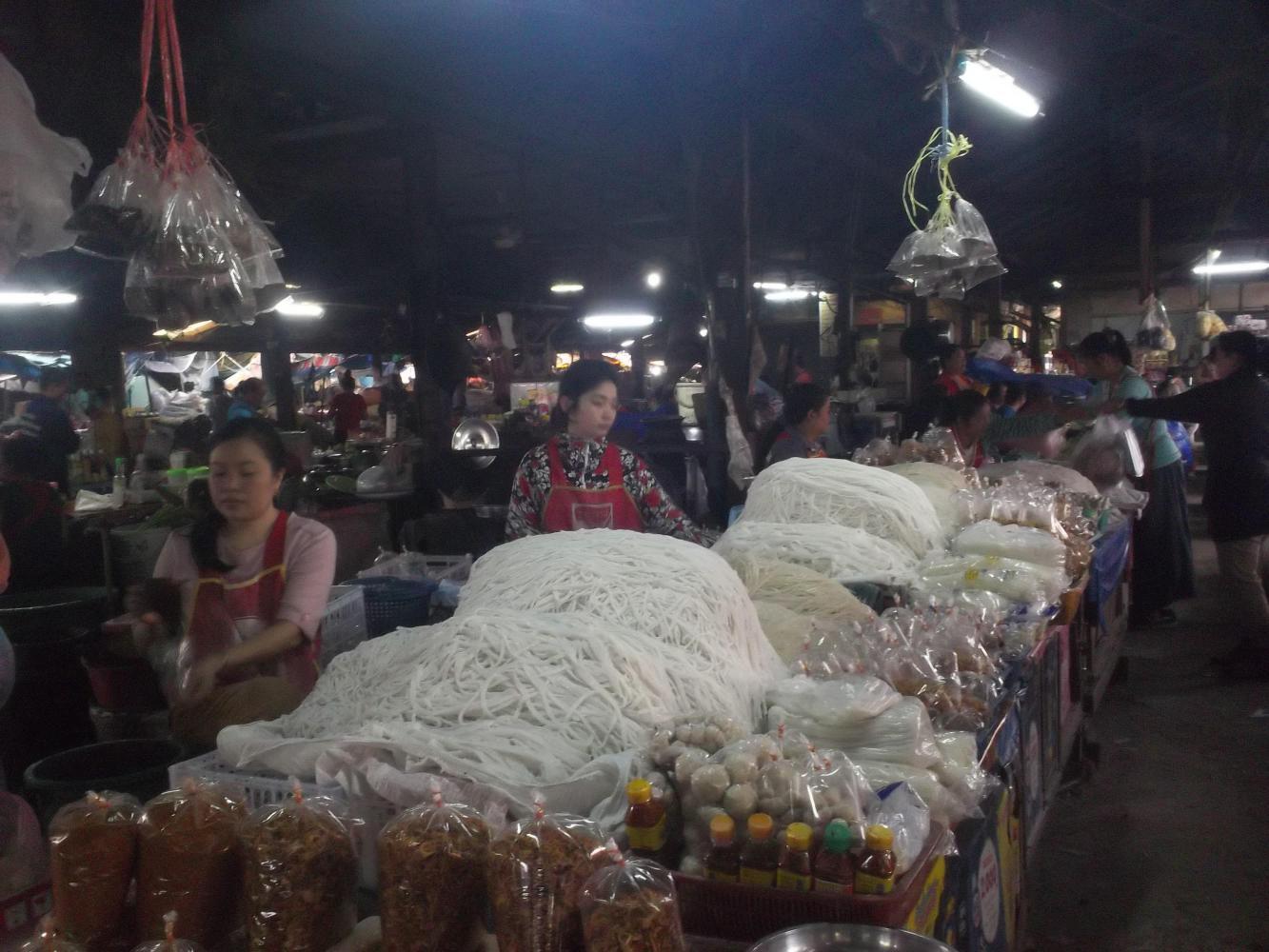 We ended up staying in Sayaboury for four nights. It was a good place to rest and there was a great market in town, just across from where we were staying, that at first Dea just told me about, but after a couple of days I was feeling sufficiently recovered as to go and take a look at for myself. It was certainly an interesting place with a whole variety of fruits and vegetables, bread, noodles, insects, and all that good stuff. Sayaboury seemed to be a much wealthier town than we had seen in other parts of the country, for reasons that were not clear to either of us, and there were a lot of big houses and big cars testifying to that.