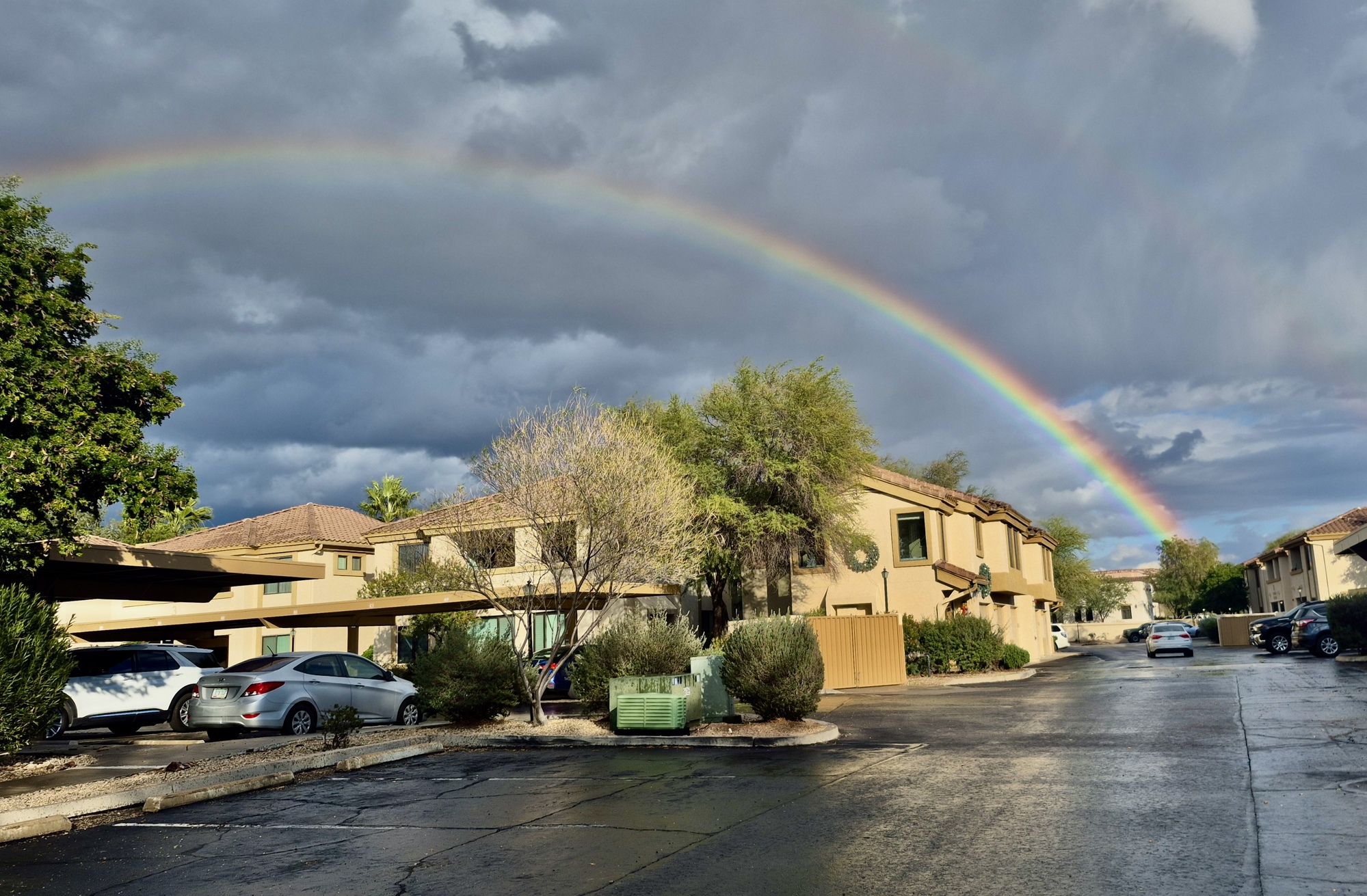 My timing is excellent. The wind continues to pick up, and the skies to the north and east start looking menacing. I'm still dry when I make it home but I don't have much room to spare weather-wise or time-wise. By the time we leave for dinner a half an hour later it's pouring outside our door, but with the sun still shining I know to pull out the phone and look around to the east before we drive off.