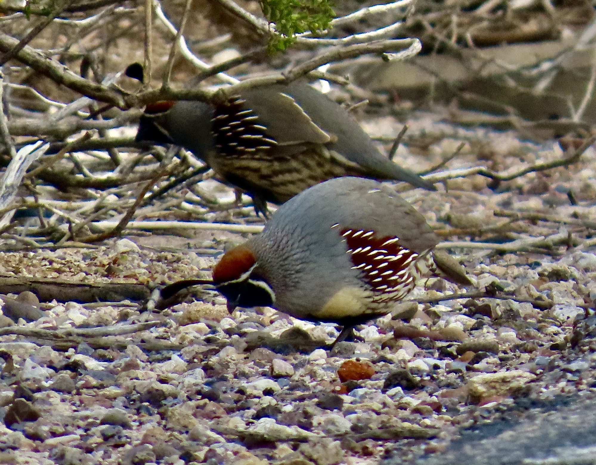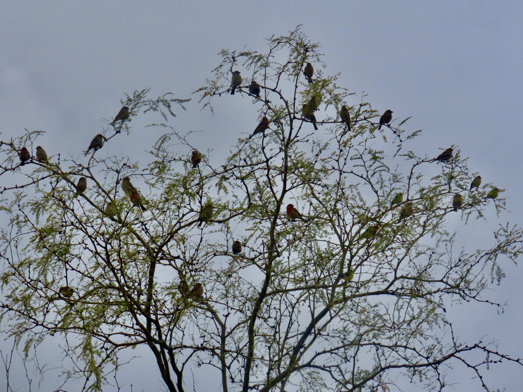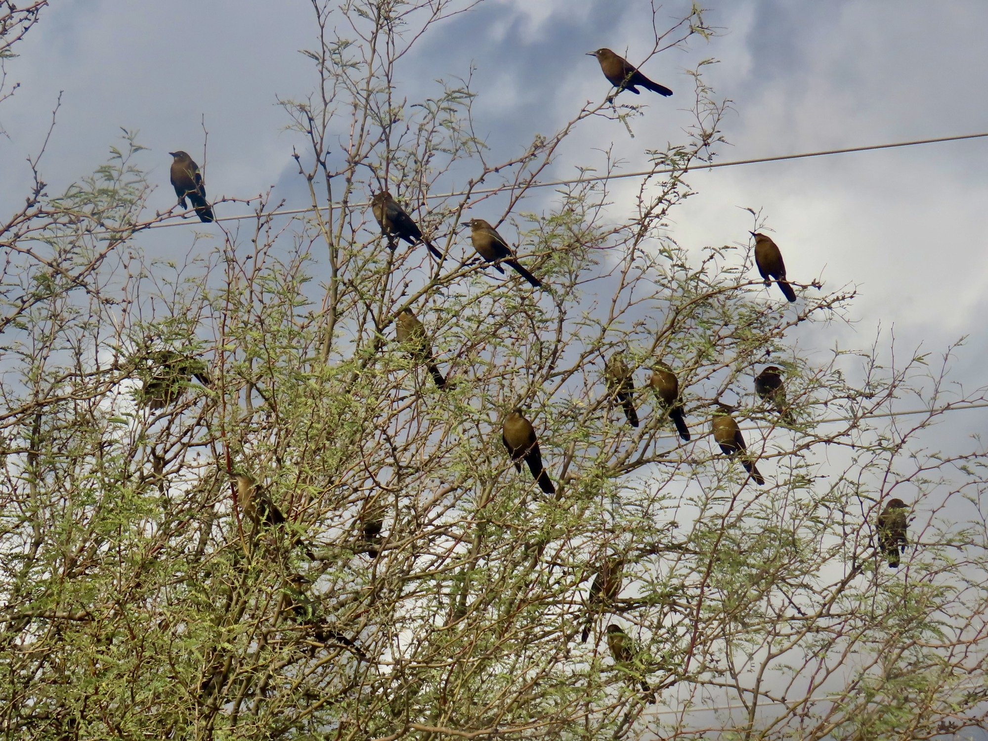 Today's list: Mourning dove, House sparrow , Northern mockingbird, Red-tailed hawk, Gila woodpecker, Brewer's blackbird, Cooper's hawk, Western bluebird, Anna's hummingbird, Phainopepla, Rock pigeon , House finch, Mallard, American coot, Ruddy duck, Snow goose, Swan goose, Double-crested cormorant, Great-tailed grackle, American kestrel, Greater roadrunner , Ring-necked duck, Northern flicker, European starling, Gambel's quail, Common raven, Lesser goldfinch. Northern harrier (27)