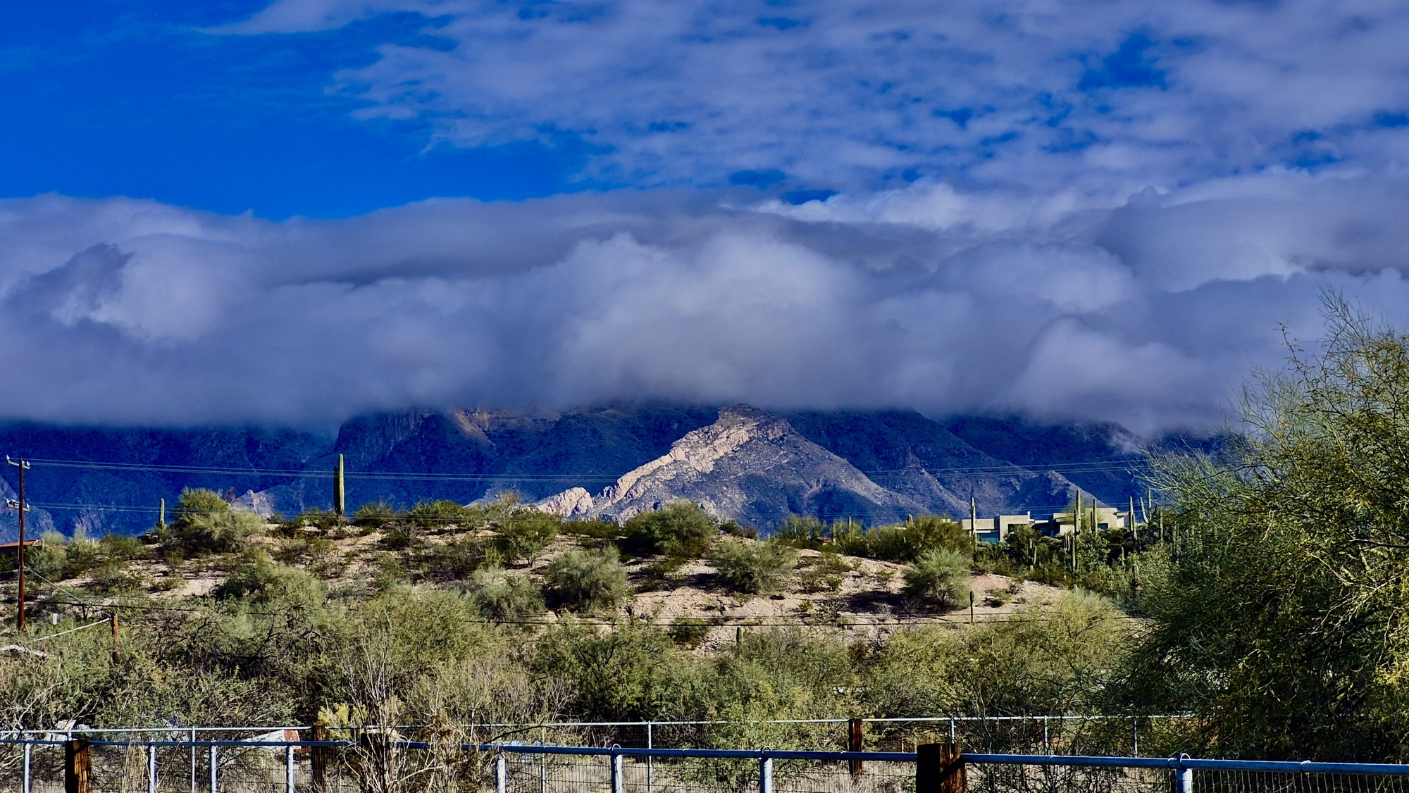 Within a few miles I start wondering what the scene would be down at Silverbell Lake, and decide that if the weather holds I'll make it that far just for the view of the mountains across the lake. I check the weather app for the latest line, see that the threat of rain is moving out another hour, and decide to continue on.