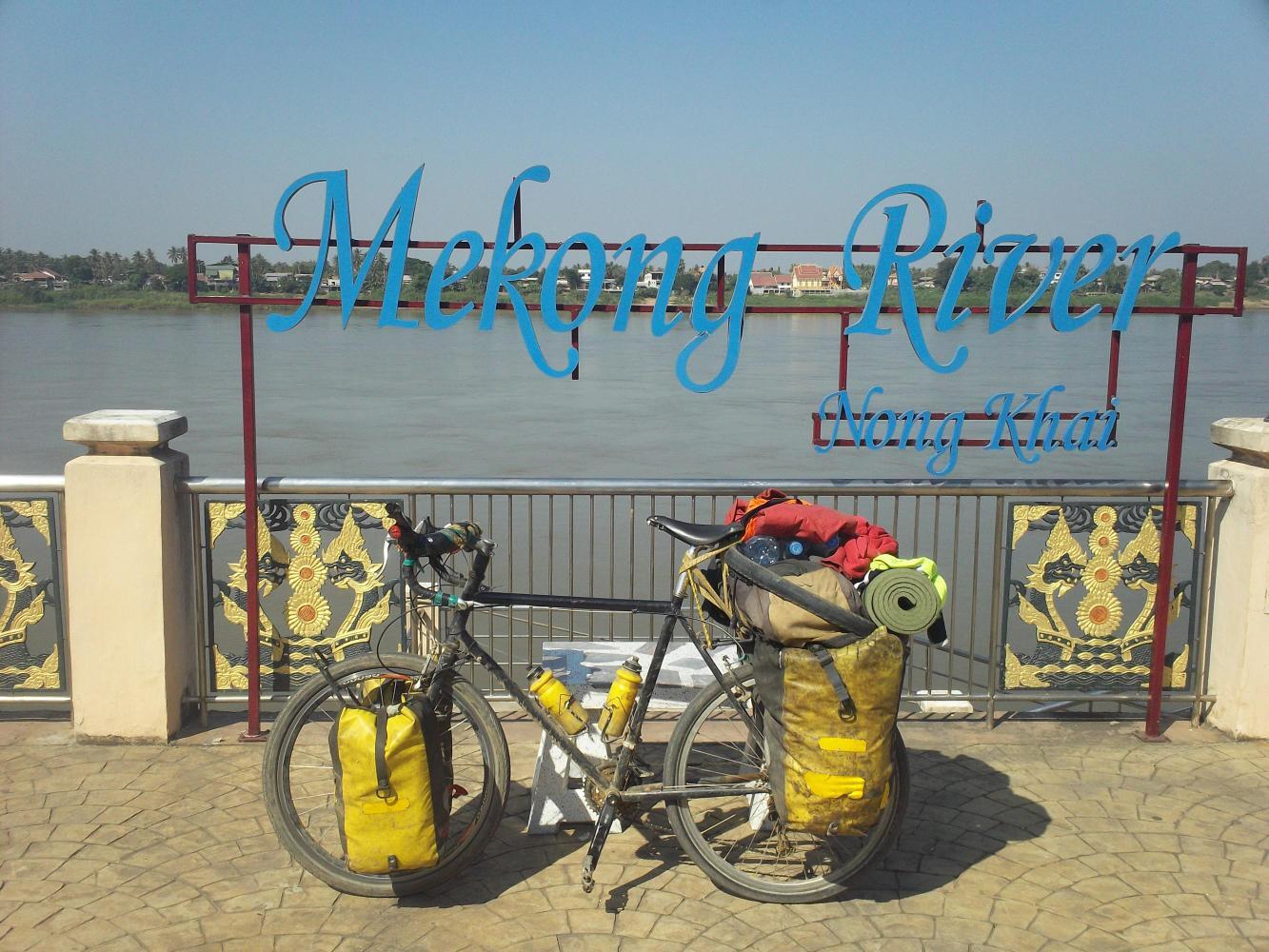 It was an easy cycle to the Friendship Bridge, twenty kilometres from the centre of Vientiane, and then a couple of very easy border posts. The Laos side took two minutes and, although there was a form to fill in on the Thai side, and a bit of queuing, there were no customs checks and it was all very simple to get my free 30-day entry stamp. The bridge itself was interesting because I had to switch sides at the beginning of it and cycle on the left side of the road, as is the way of things in Thailand. It was very easy to do this, because the two lanes of the road completely separated and crossed one another in a four-way crossing. There were signs saying 'drive on left on bridge' and at the crossing a sign saying 'go straight on' and others saying 'no right turn,' 'no left turn,' 'go straight on.' It was very easy, you would have to be a complete idiot to turn right and try and keep cycling on the right side of the road. So it wasn't that much of a surprise to find out a few days later that Robin had done just that.