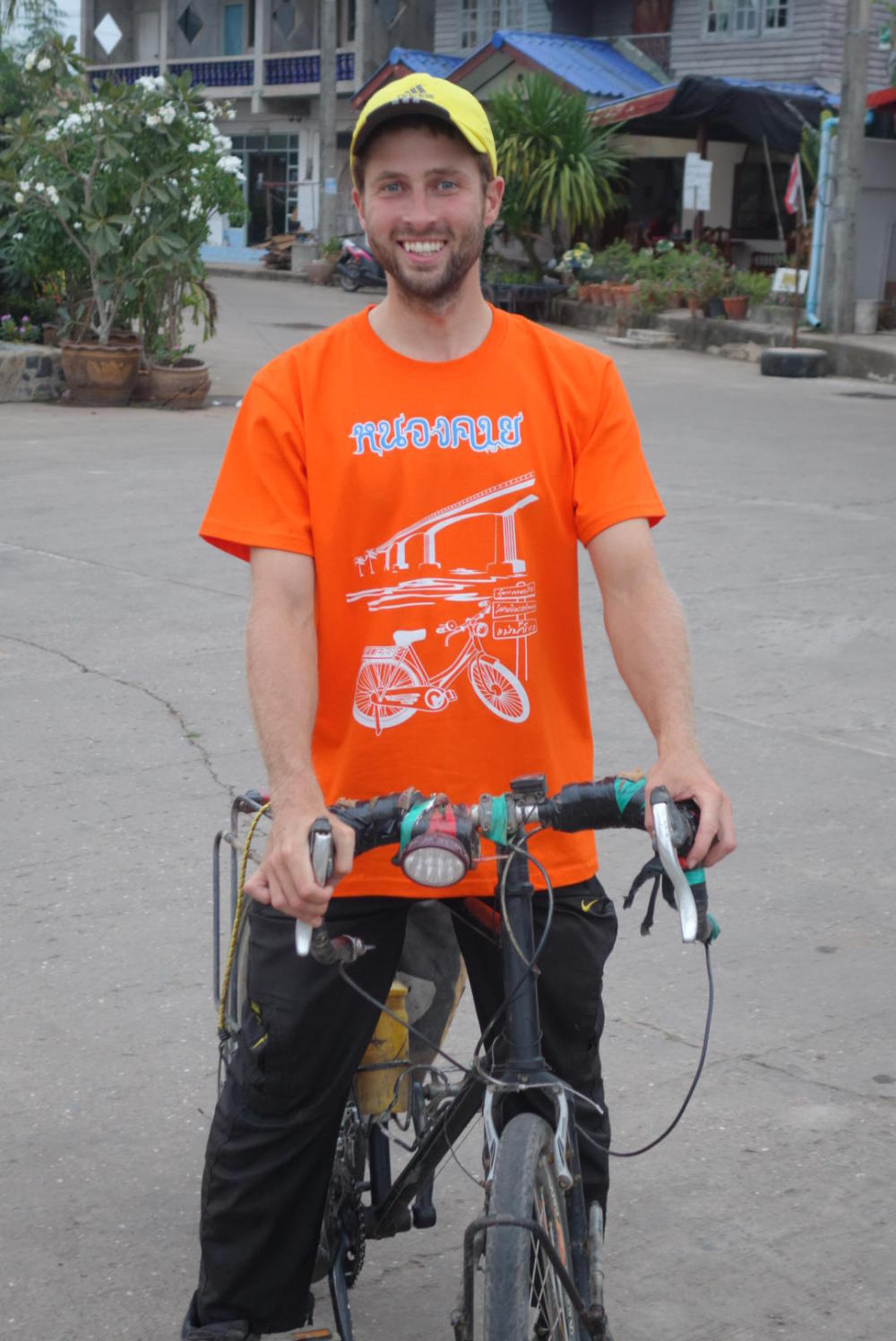 Christmas morning in Thailand, and my good friend Robin very thoughtfully presented me with my absolute dream Christmas gift. He got me exactly what I wanted, it was the perfect present for me. No, no, not Dea, but almost as good. It was a bright orange t-shirt. A very bright one, with a picture of a bicycle on it. I was extremely very happy.