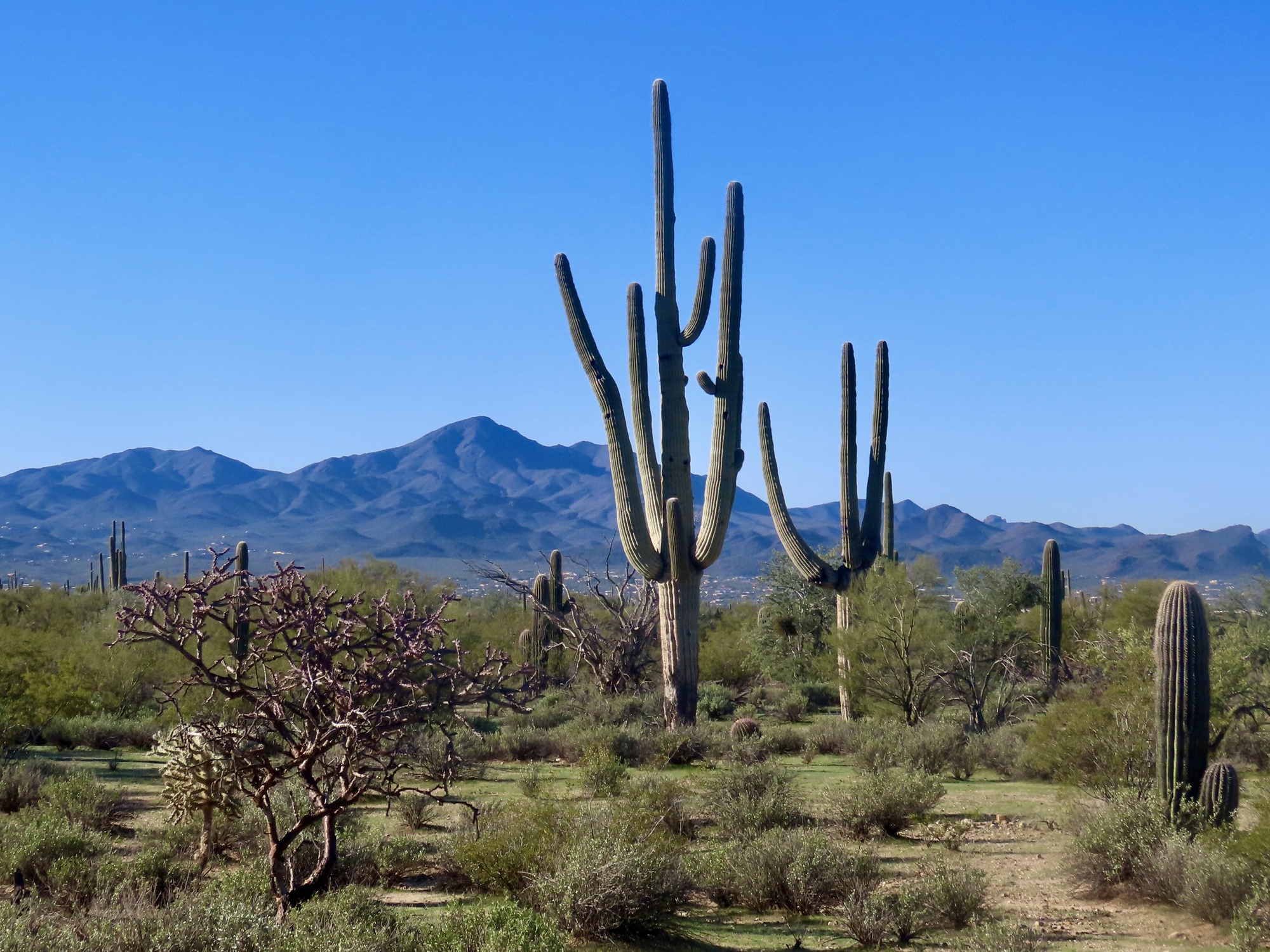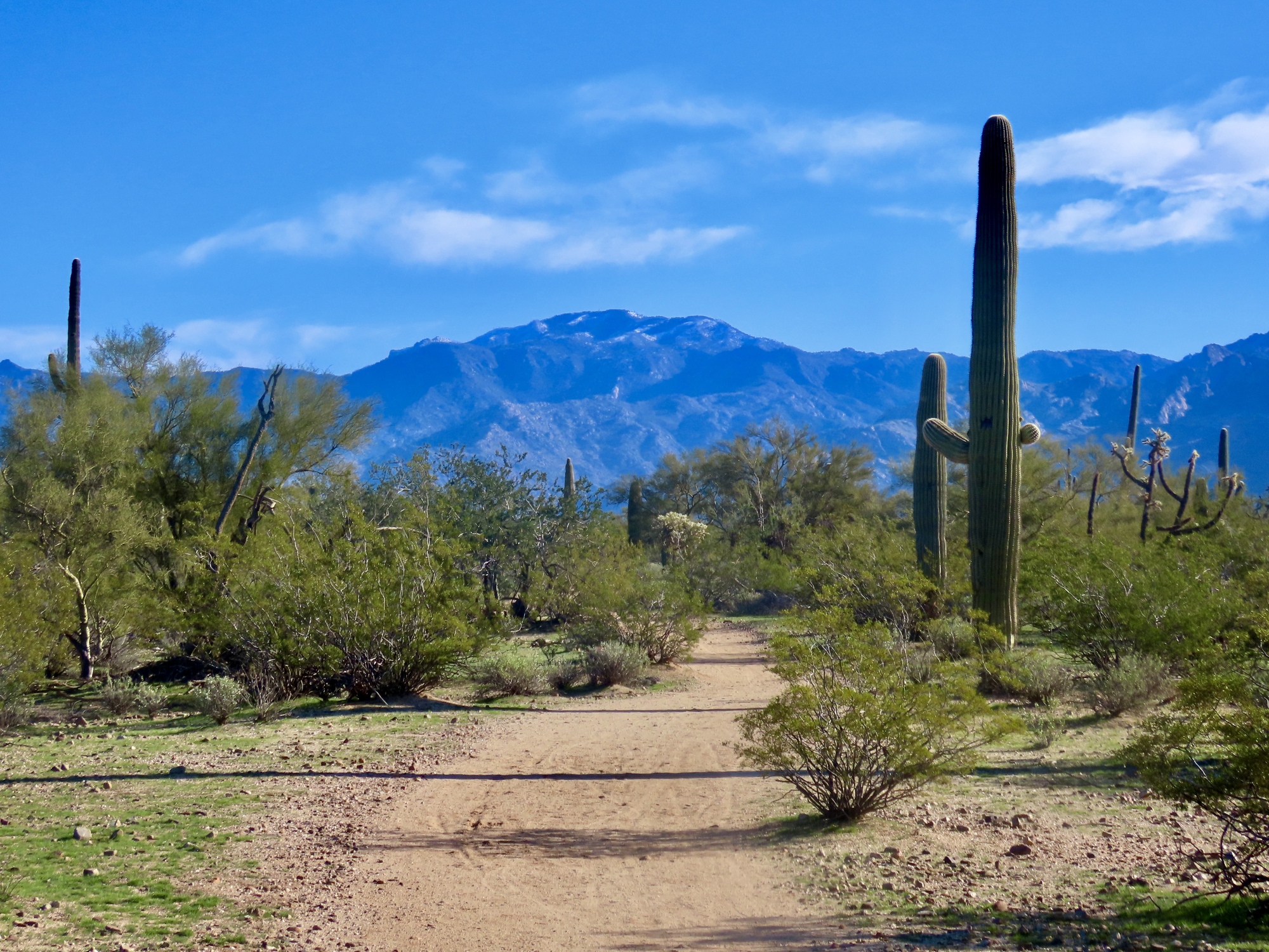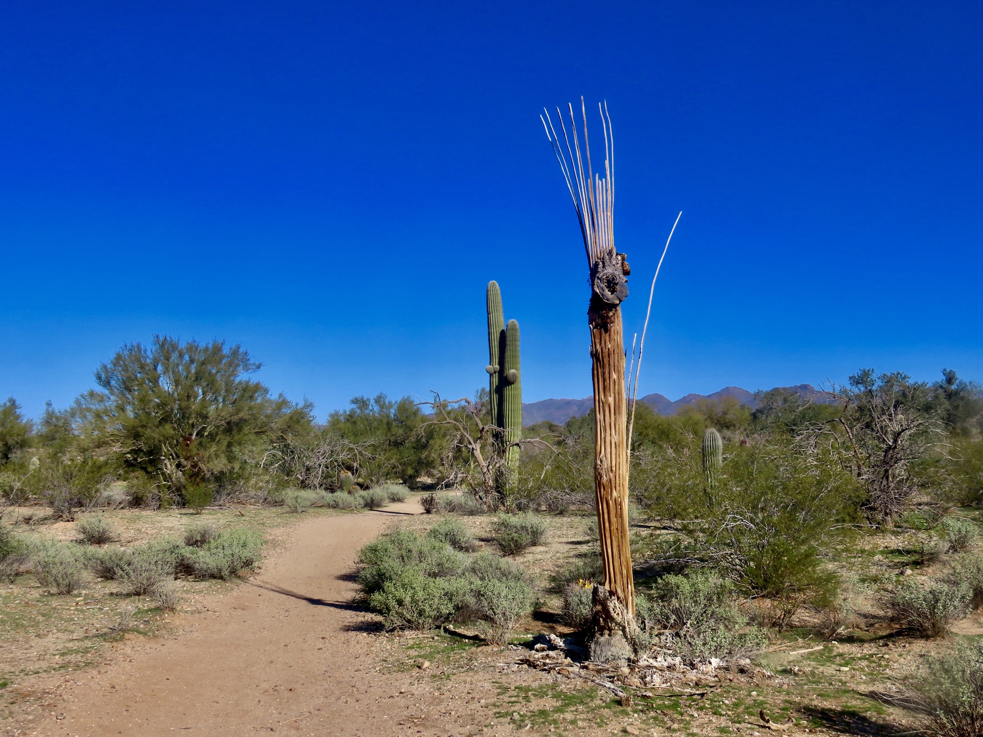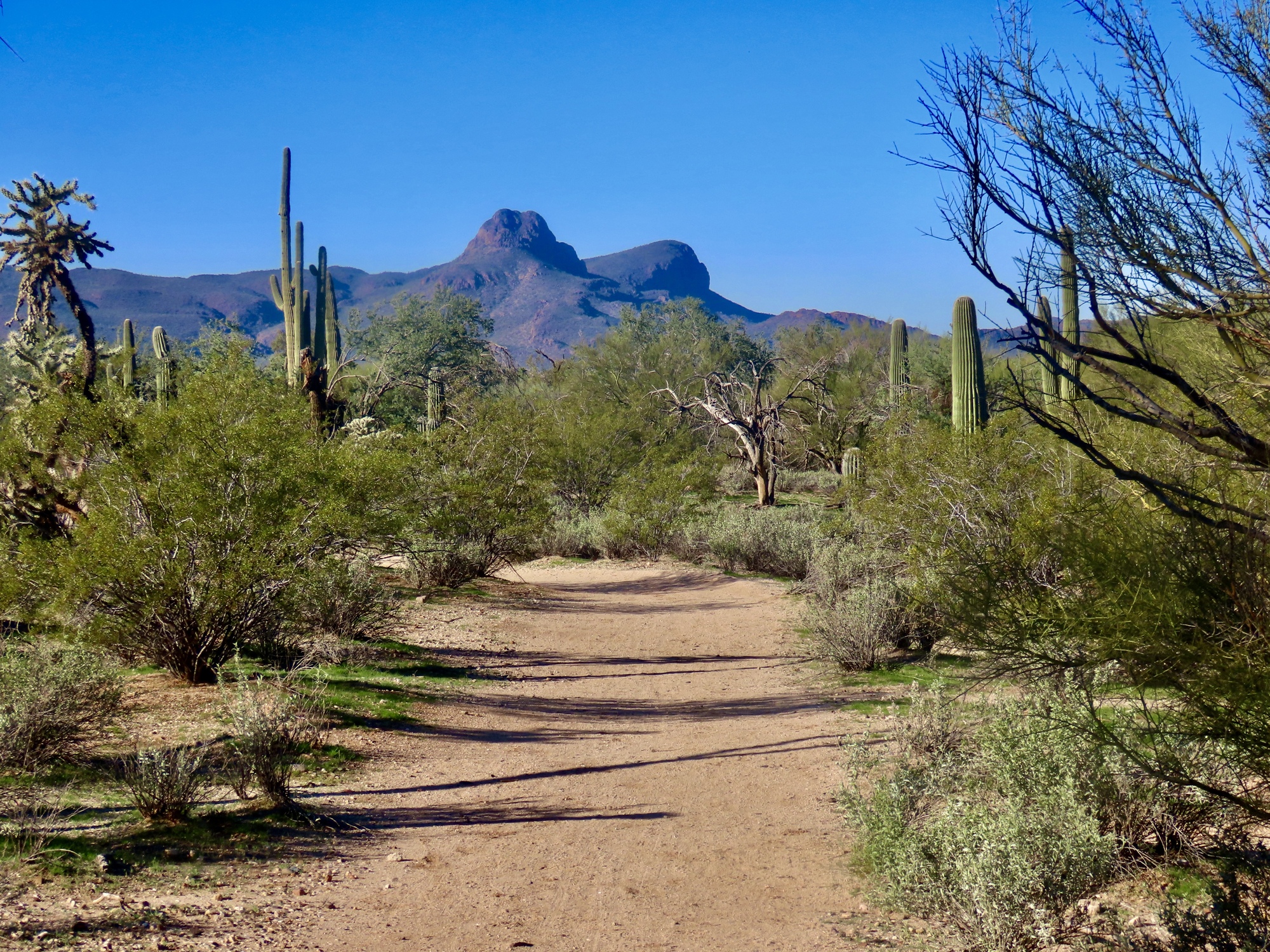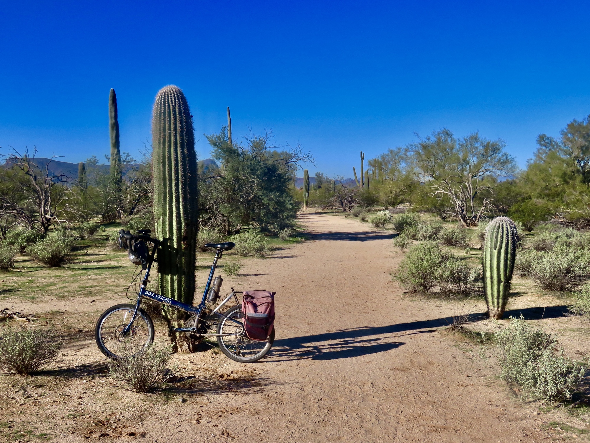 The trail is part of a large trail network in Maeheen Benan Desert Sanctuary, which turns out to be a fantastic spot. For a refreshing change bicycles are permitted, and the trail surface is decent enough that it's easy to manage with my bike. I follow the primary trail for about a mile before turning back, enjoying the desert scenes and splendid mountain vistas. I came out here for the birds, but really this desert preserve is the best thing here. It's my favorite discovery of the winter here.