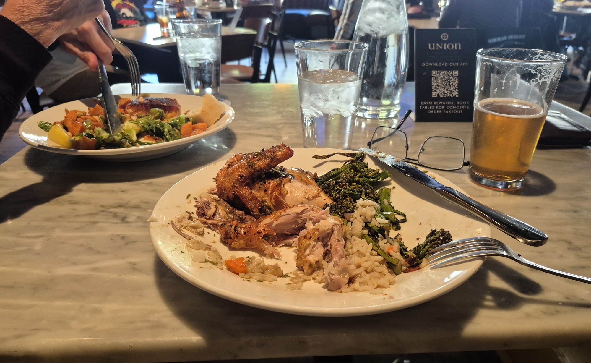 After I'm back, Rachael and I head over to Union Street Public House for a meal and intimate chat. The meal is fine, with us repeating what we had last time, but the intimate chat has to wait because the place is packed and deafening as the undefeatedUniversity of Arizona basketball team finishes polishing off TCU. With its 16-0 record this year, the Wildcats are the number one rated NCAA team at the moment - definitely something worth making a shout about.