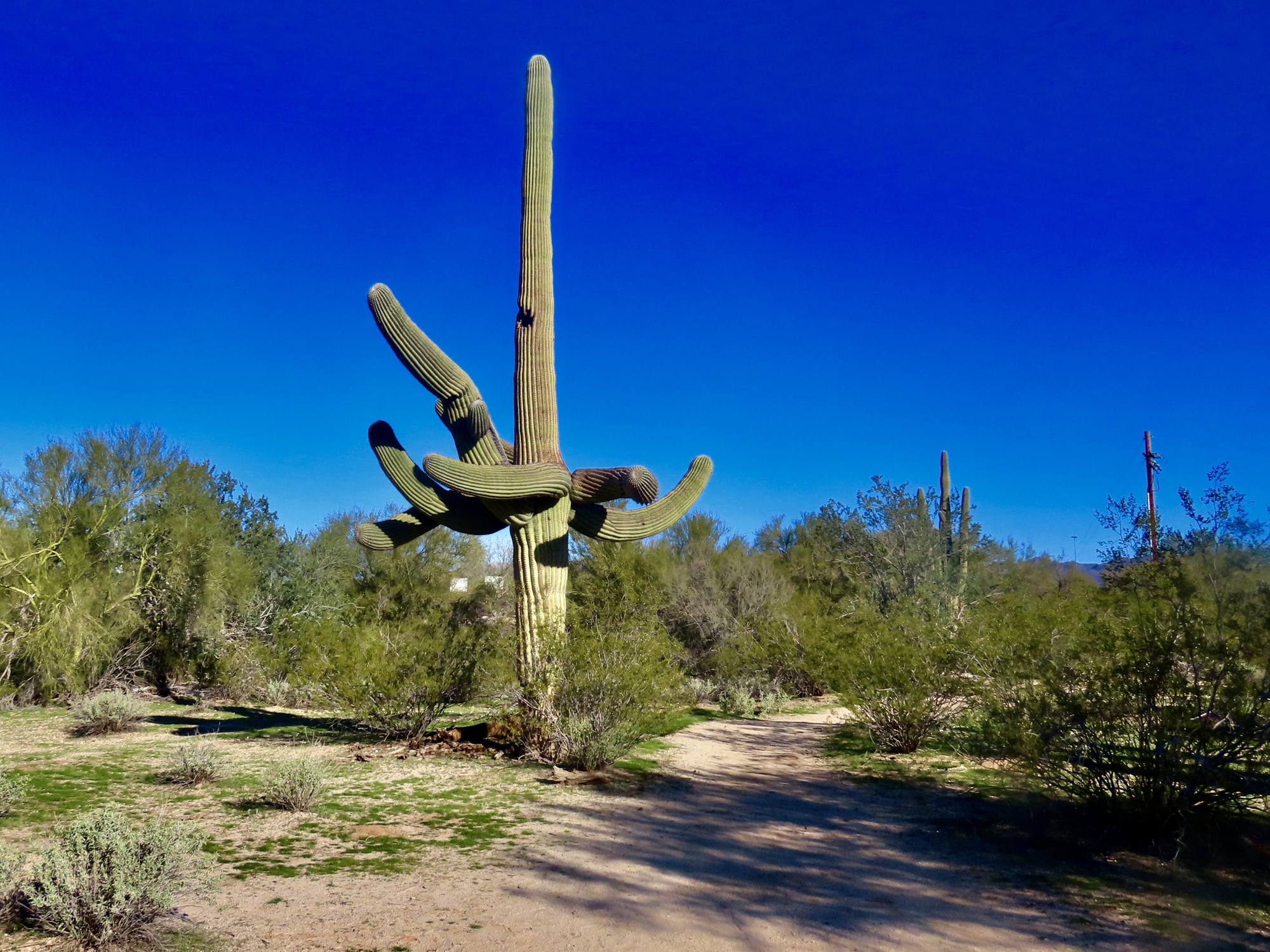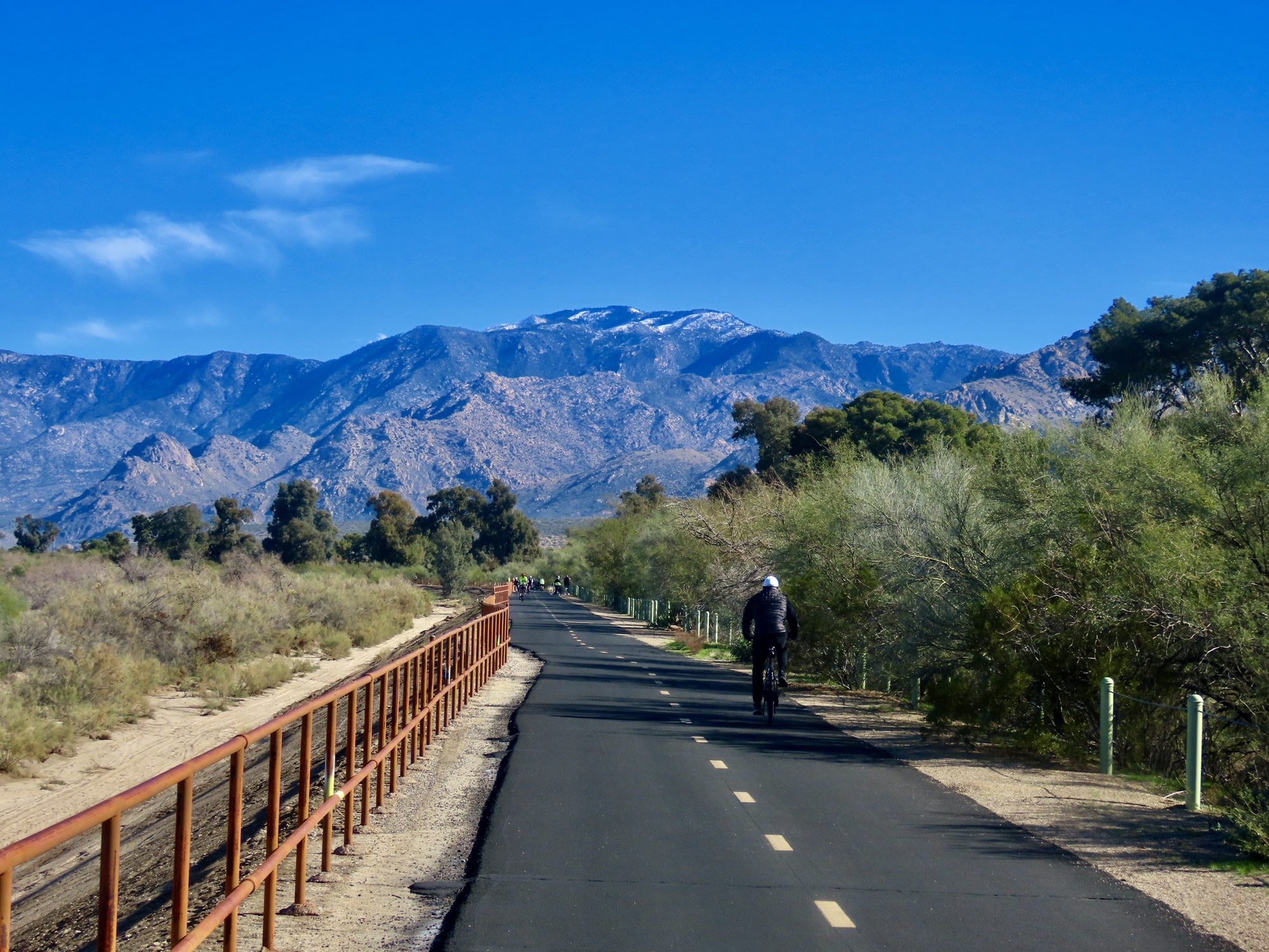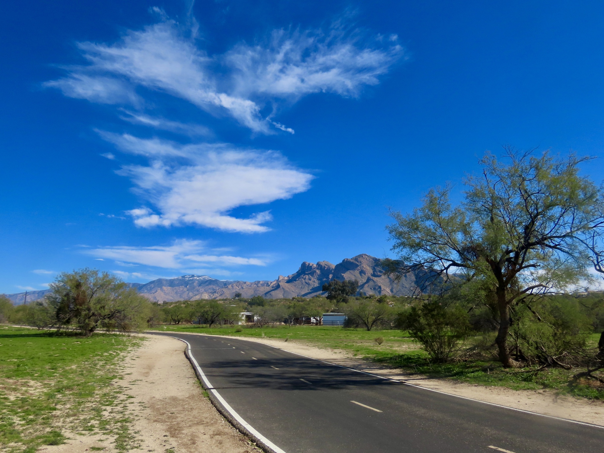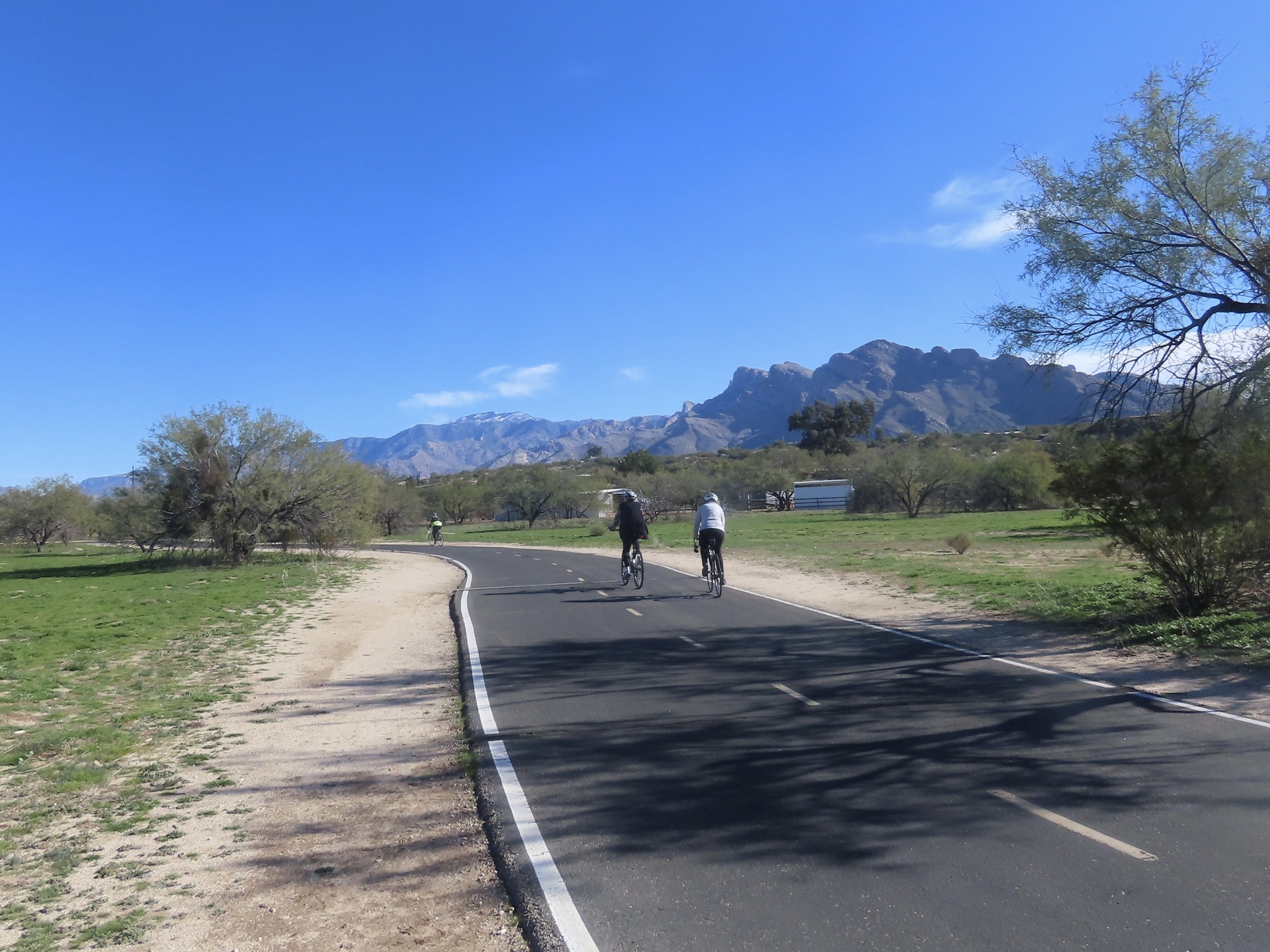 It isn't long before the golfers arrive and it's time to move on, so it's really lucky I've driven out here and arrived early in the day. If I biked I'd have missed the show. And it still leaves me plenty of day for biking out to Oro Valley, but it's not the upwind slog I'd anticipated. Instead, it's very calm here on the north side of the Catalinas and I enjoy an excellent ride, continuing all the way to the end of the path near Catalina State Park. An excellent day all around, as long as you don't look up and around at the rest of the world.