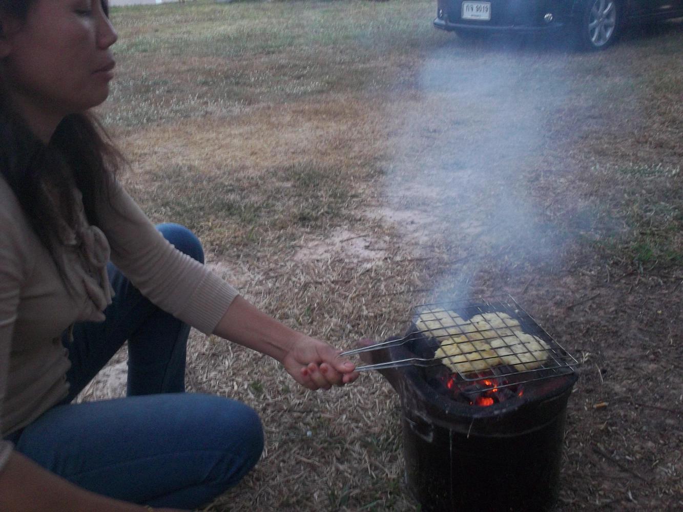 Next Batong tried to make some rice burgers and, like men all over the world, he took charge of barbecuing them on the outside grill in the garden. He failed, and then, like women all over the world, his wife had to step in and make them properly. It was just the three of us now in this garden, everyone else was back at the other house, and I wondered why we were eating again here, and not over there, but the rice burgers were delicious. Then Batong handed me his phone on which he was having a messaging conversation with someone who could speak English, and he encouraged me to write a message, which I did, in which I asked to whom I had the pleasure of texting. 'I am Ploy. How are you?' was the reply.