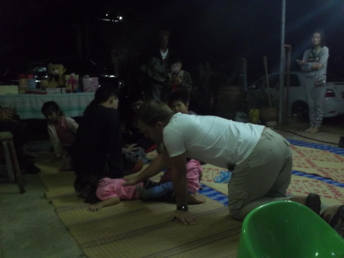 Most of the family sat on the floor now, in a big circle while more food was eaten and presents were exchanged. Jonas and I sat on a table a little away from the action though, and he told me that he was still treated as something of an outsider. He told me that Thai people are very united as Thai people, and that it is effectively impossible as a foreigner to become truly integrated. He had been coming here for five years, had married into the family, and yet was still referred to as 'the falang.' We mused on how this kind of attitude would be considered racist in Sweden and elsewhere and had other such interesting conversations about Thailand and cultural differences. We were joined on the table by a Mr Sombeung who I was told could speak English. Mr Sombeung could not speak English.