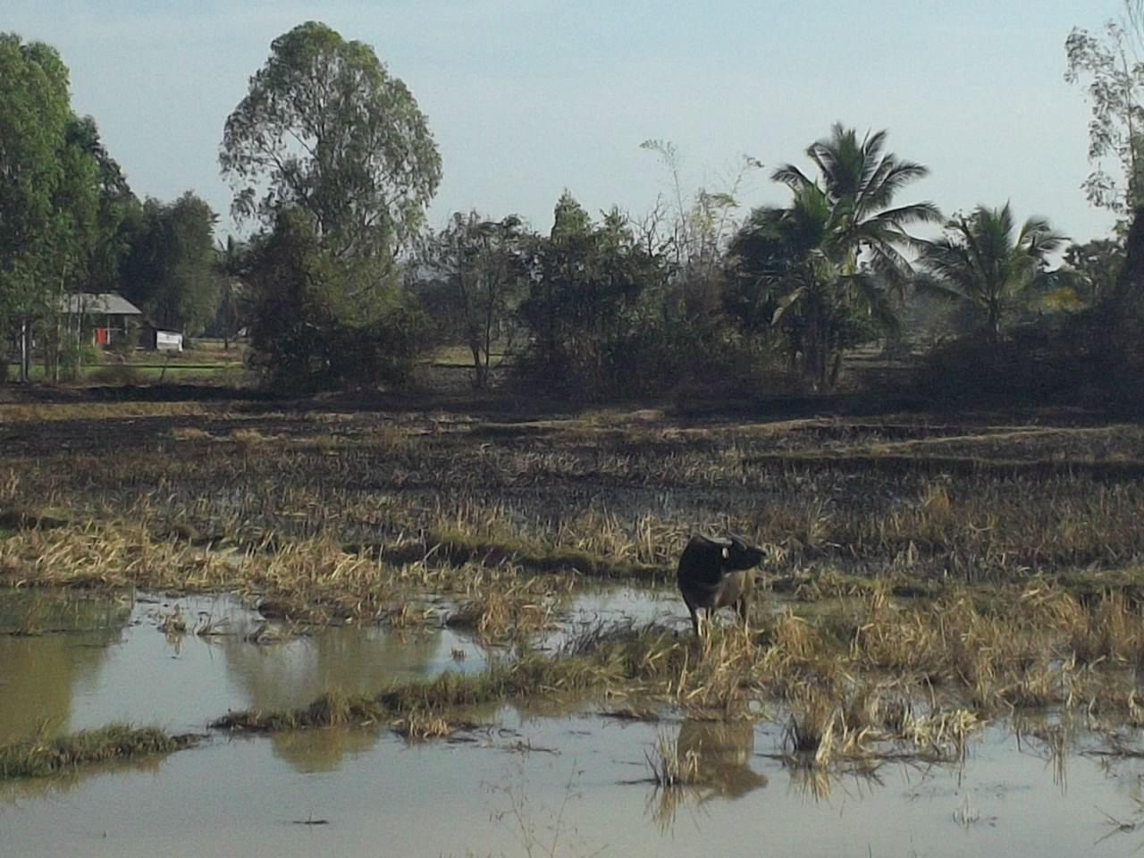 This part of Thailand was a really lovely place to be cycling. I continued to mostly use the smaller roads and these took me through a variety of landscapes - I passed by harvested fields, rubber-tree plantations, rice paddy fields, wild woodland. The traffic on these roads was light and what there was mostly drove at a sensible speed, gave me plenty of space, and did not beep the horn constantly. And the people in the villages and at the roadside were very friendly too. They were never overly intrusive, but it was impossible for me to stop and look at my map without someone coming over to try and help me with directions. Making them understand that I wanted to stay on the smaller roads instead of taking the main highway was another matter.