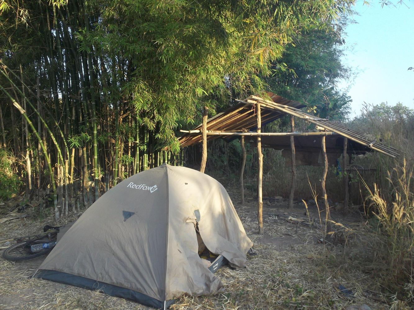 At night I had returned to my old ways and always camped, which Alan the accountant said was a very good idea. I fell into the habit of camping next to the wooden huts that Dea and I had slept next to a couple of times in Laos. In Thailand they seemed to be even more prevalent and it was usually easy for me to peel off into a field and set up my tent next to them. There was never anyone around, maybe because the crops had been harvested, or because it was all done by machine now anyway. The huts almost always came with a wooden platform that I could sit on to cook my dinner, and there would be a nice spot of flat ground for the tent. This was ideal, because I'd seen an alarming number of dead snakes on the road since I'd been in Thailand, and I didn't very much fancy walking through long grass or anywhere that I couldn't see the ground.
