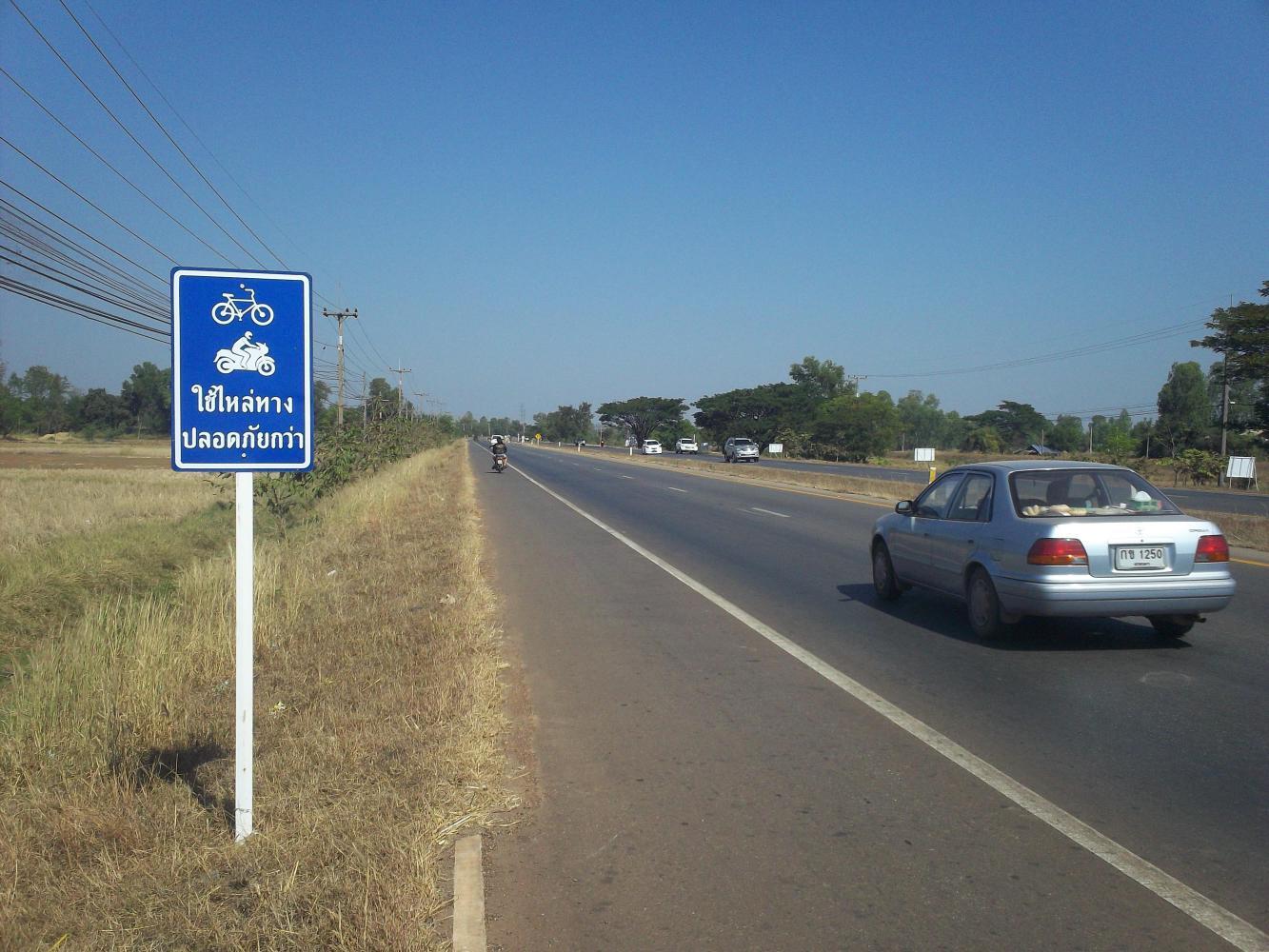 I was heading vaguely in a south-east direction, and my plan was to go to either the Friendship Bridge II or the Friendship Bridge III in order to cross the Mekong back into Laos. Having just skirted around the city of Sakon Nakhon I had to make a decision about which of these I was going to head for, and I stopped to use wifi at a little cafe. A bit of research revealed that neither of these bridges officially allowed cycling and I read a few reports of others having to load the bikes onto motor vehicles in order to cross the border. Naturally this put the fear of God into me, and, although there seemed a chance I could just bribe my way across by bicycle, I was not so stupid as to have not learnt my lesson from Siberia, that lesson being that I don't know how to bribe people. And so I looked for an alternative, and saw that there was a border crossing further south at a place called Chong Mek, where the border was no longer marked by the Mekong and where I should have no problems. The only consequence of this change was that I would spend a little less time in Laos, and a little more time in Thailand. Which was no bad thing. I turned south.